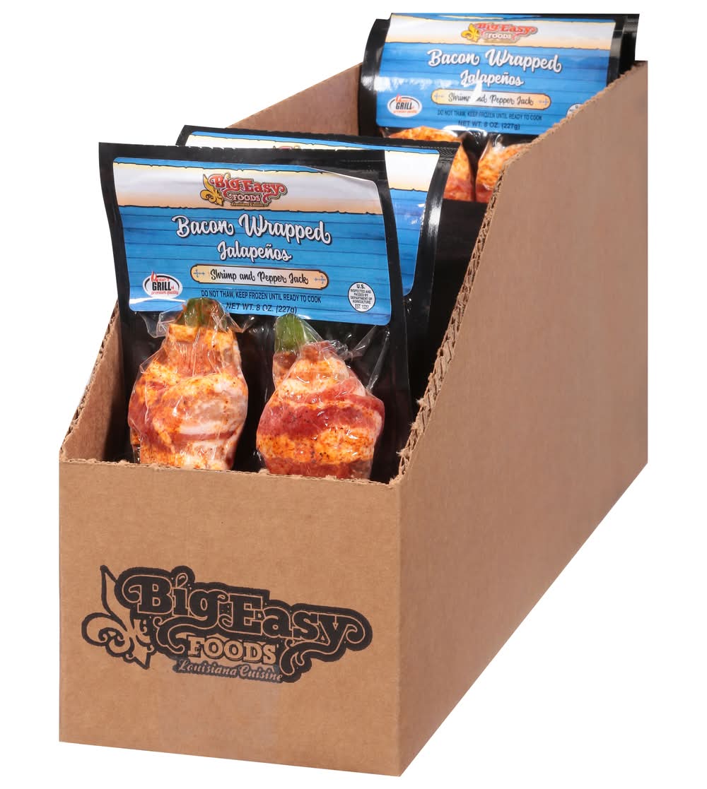 Your Big Easy Foods Shrimp & Pepper Jack Bacon Wrapped Stuffed Jalapenos delivery options may vary depending on where you are in a city. Enter your address to browse Big Easy Foods Shrimp & Pepper Jack Bacon Wrapped Stuffed Jalapenos delivery options near you.
