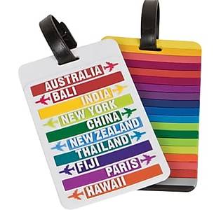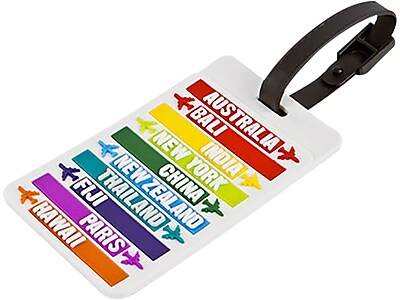 Identify your bags easier with these brightly colored Travelon Hot Spots luggage tags. Slide the strap through the buckle and snap these luggage tags for easy, secure closure. An identification card is included, making it convenient to provide your details, and the pocket is made to accommodate business cards for a more professional look. These Travelon Hot Spots luggage tags are made of PVC, which is durable enough to stand up to wear and tear. - Designed as a luggage tag for identifying bags - Comes in bright colors (rainbow), made of PVC - Represented in a set of two tags: 8.25W x 3.25L - Decorated with names of cities and countries - Fits business cards and includes an ID card - ⚠ WARNING: California Proposition 65 Warning. This product can expose you to chemicals including lead, which are known to the State of California to cause cancer and birth defects or other reproductive harm. For more information go to www.P65Warnings.ca.gov