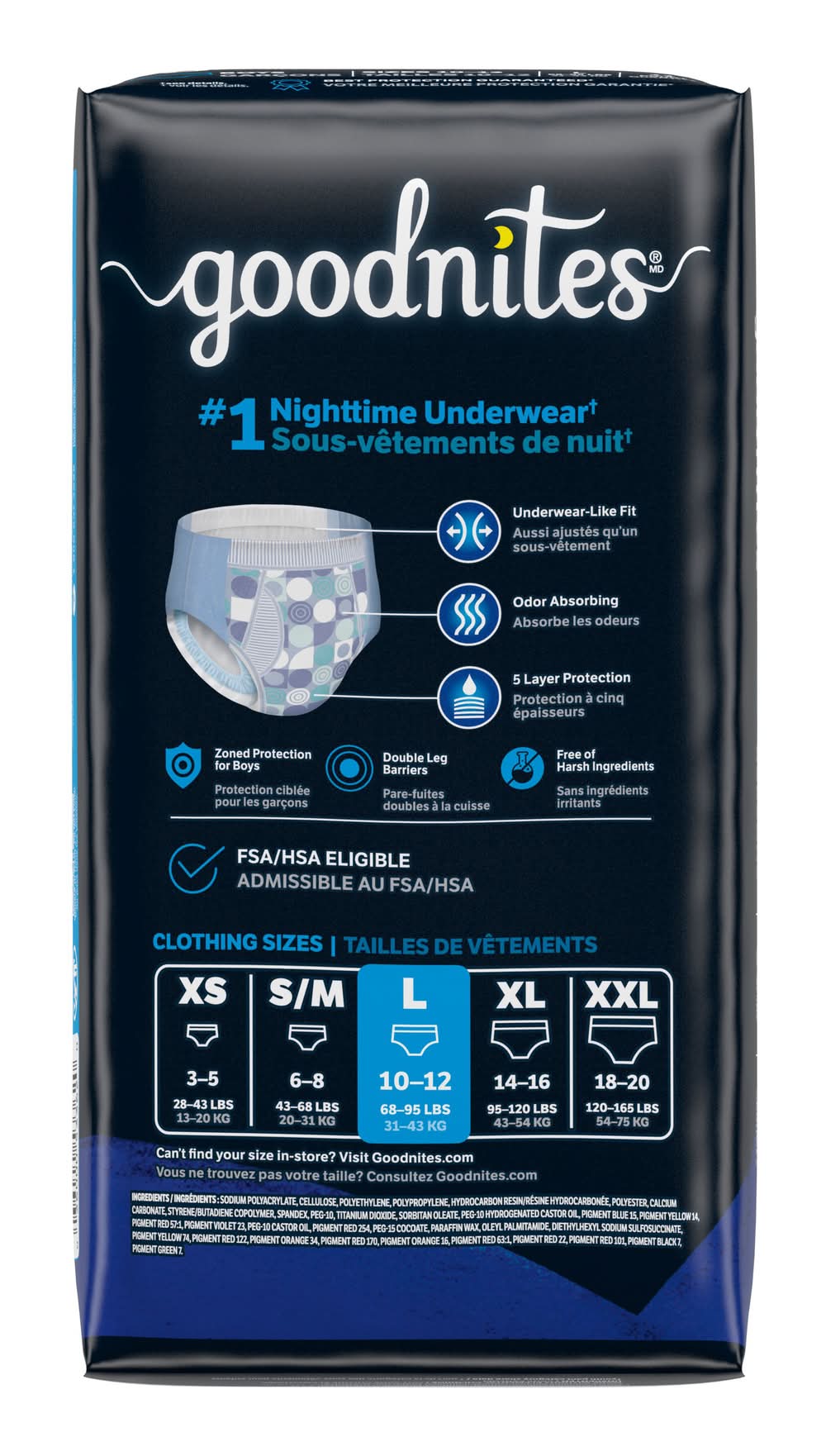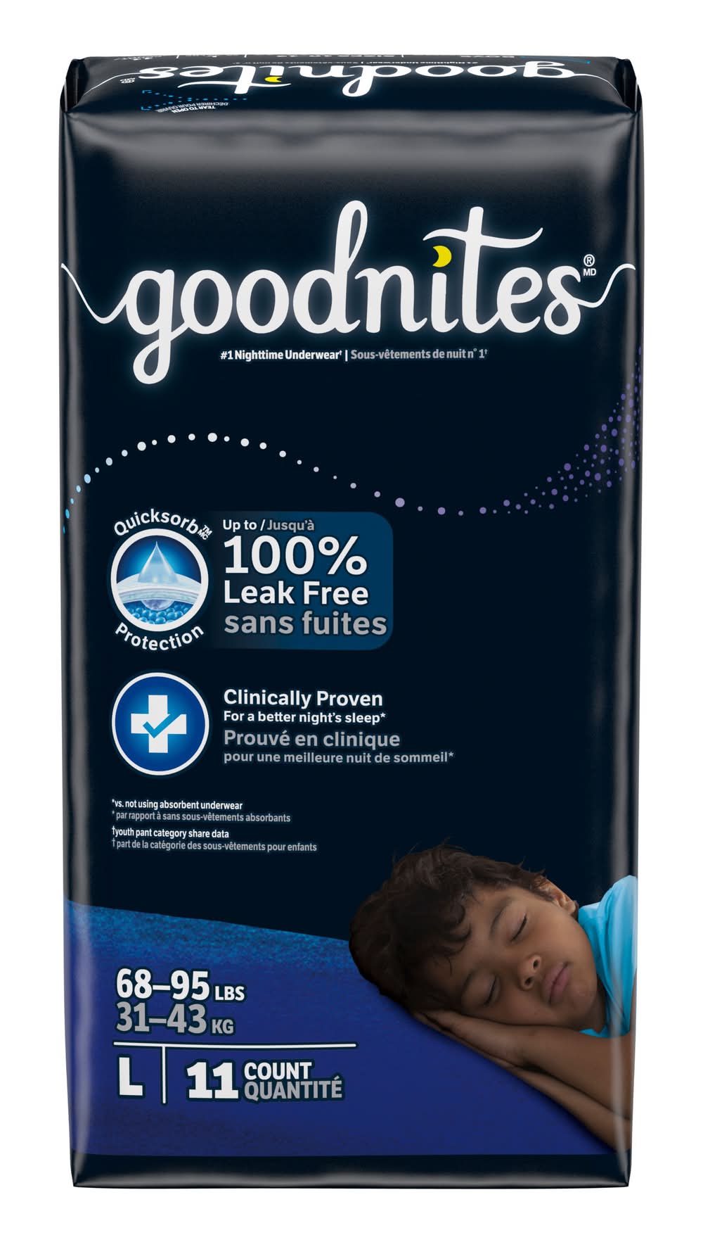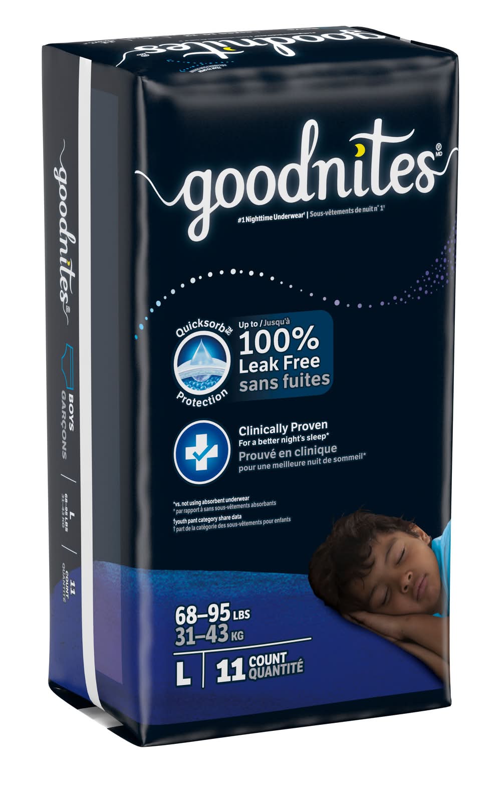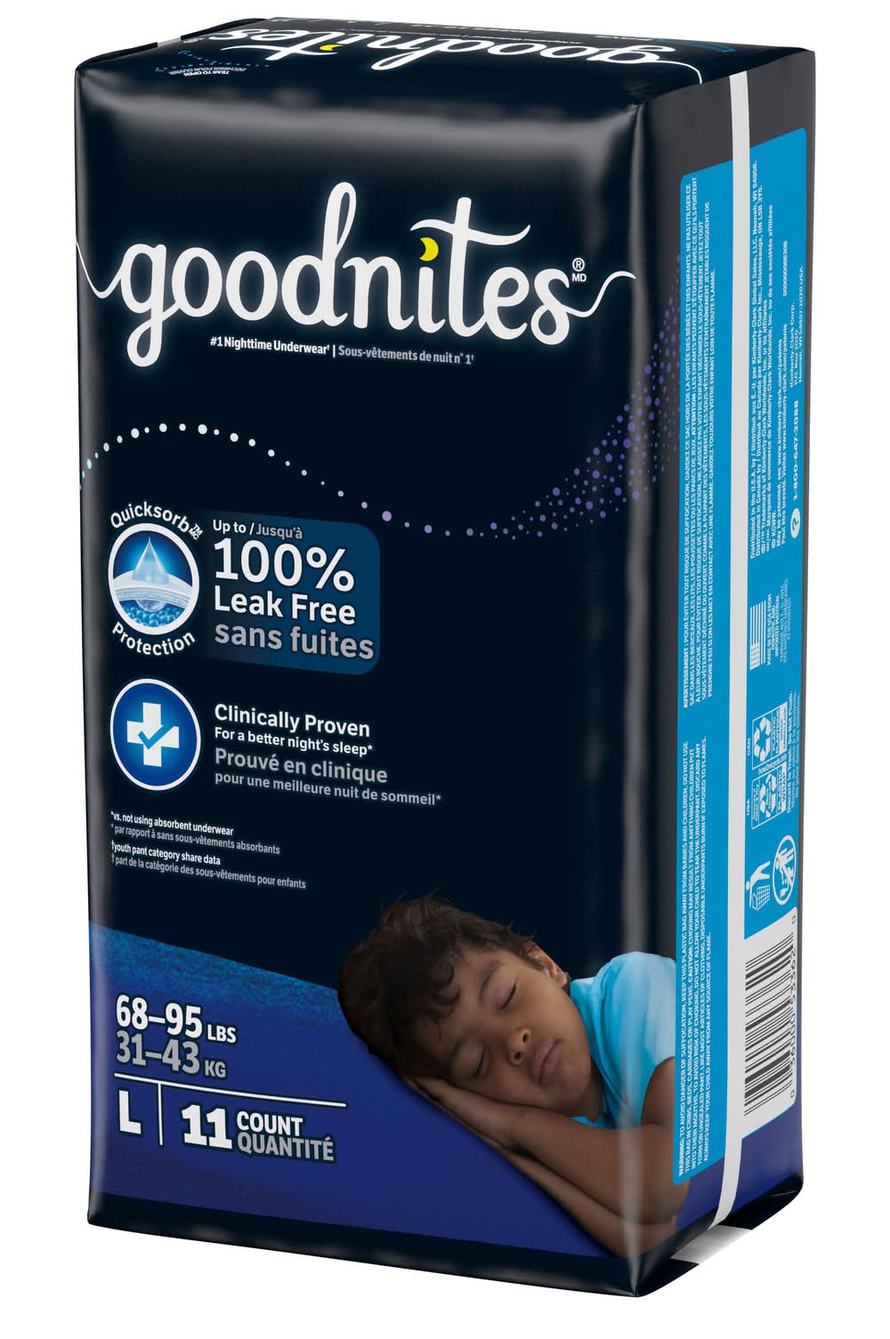 Goodnites Boys' Nighttime Bedwetting Underwear, Size Large (68-95 lbs), 11 Ct • Size: L • Kimberly-clark Global Sales, LLC, Neenah, WI, 54956, USA • Packaging: Reusable