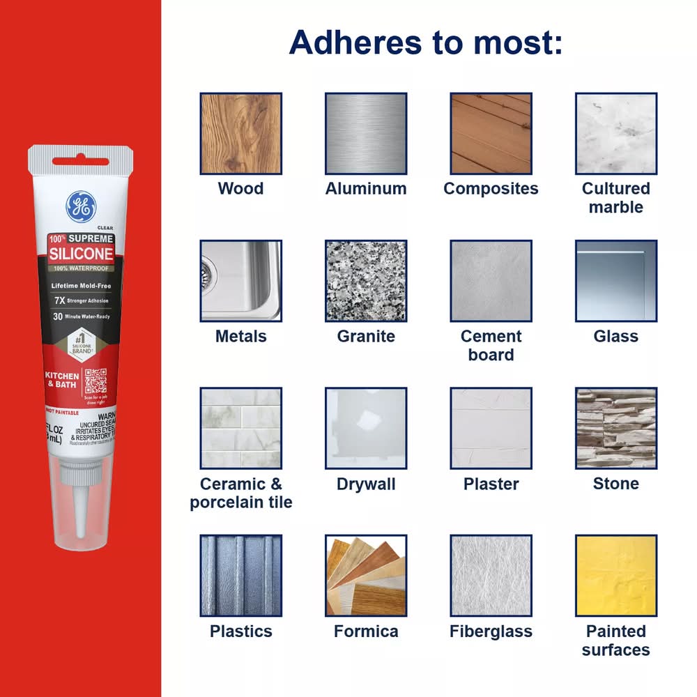 Your General Electric Supreme Silicone Water-Ready Caulk delivery options may vary depending on where you are in a city. Enter your address to browse General Electric Supreme Silicone Water-Ready Caulk delivery options near you.