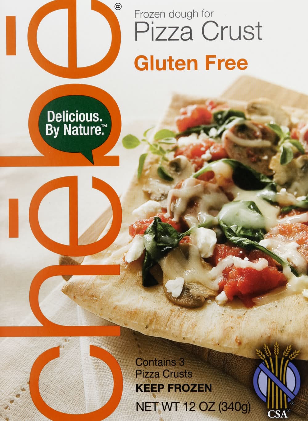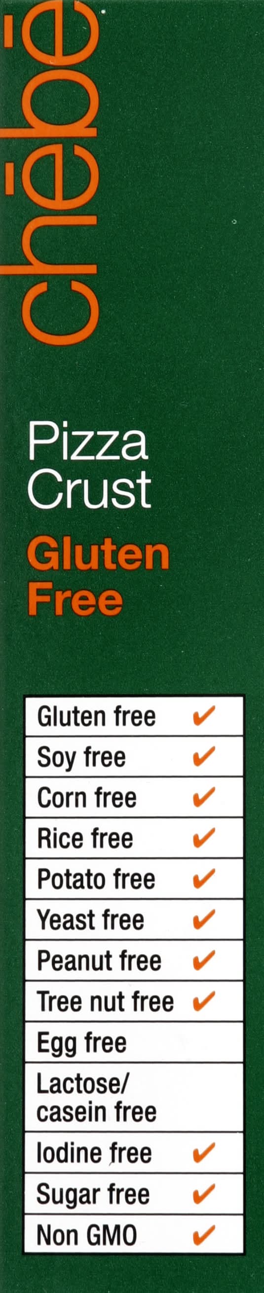 Frozen dough for pizza crust. Gluten free. Contains 3 pizza crusts. Delicious by nature. Soy free. Corn free. Rice free. Potato free. Yeast free. Peanut free. Tree nut free. Egg free, Lactose/casein free. Iodine free. Sugar free. Non GMO. It was 1999 when we decided to bring to the U.S. the great tasting bread we enjoyed while living in Brazil. Even though it was naturally gluten free, we didn't make a big deal about it until we got loads of mail from gluten-intolerant customers. The message was simple: customers loved that our bread was full of flavor without an aftertaste. Today, all our dry mixes and frozen breads prove that gluten free can taste great. Give Chebe a try. We think you'll agree that it's delicious by nature. Celiac Sprue Association: All Chebe mixes and frozen breads are certified gluten free. Chebe,