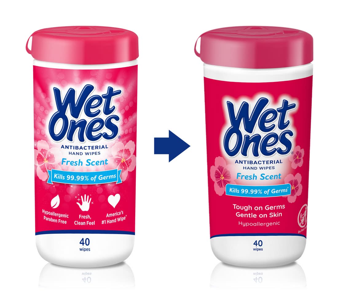 00076828047039 - Wet Ones Fresh Scent Antibacterial Canister, 40ct • Size: 5.7 in x 7.25 in • Edgewell Personal Care Brands, LLC, Shelton, CT, 06484 • Packaging: Reusable