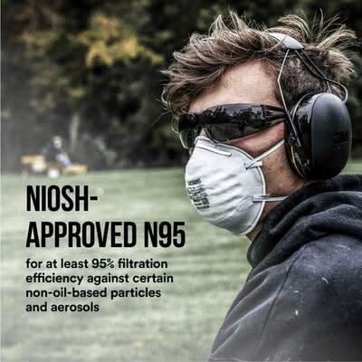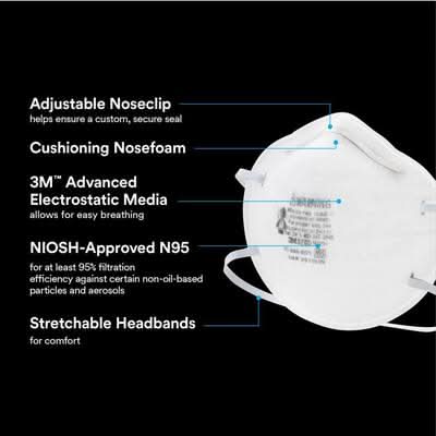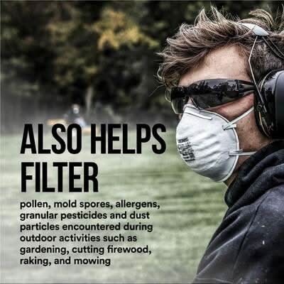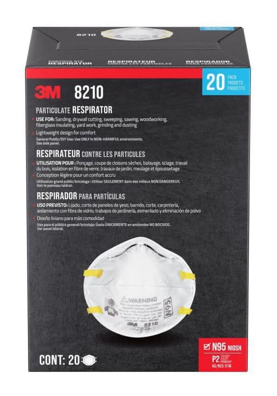 The 3M Particulate Respirator 8200 provides at least 95 percent filtration efficiency against certain non-oil-based particles and aerosols. The 3M Advanced Electrostatic Media allows for increased air flow while enhancing the capture of airborne particles helping you breathe easy. Cushioning nose foam, adjustable noseclip and stretchable headbands help provide a comfortable, secure seal. This N95 respirator helps filter pollen, mold spores, allergens, granular pesticides and dust particles. This disposable respirator may be suitable for activities such as sanding, drywall cutting, sweeping, sawing, wood working, fiberglass insulating, yard work, grinding and dusting. This respirator contains no components made from natural rubber latex. WARNING AND LIMITATIONS: General Public/DIY Use: Use ONLY in NON-HARMFUL environments or in accordance with air quality recommendations of your public health authority. Workplace/Occupational/Hazardous Use: Use under a government-compliant respiratory protection program (e.g. OSHA). WARNING: This respirator helps protect against certain particles. Misuse may result in sickness or death. For correct use, consult supervisor and User Instructions or call 3M in USA at 1-800-247-3941. In Canada, call 1-800-267-4414. Color: White