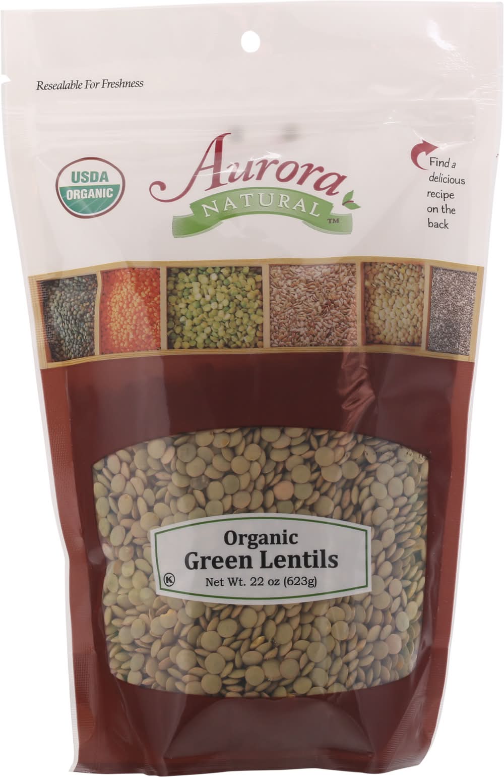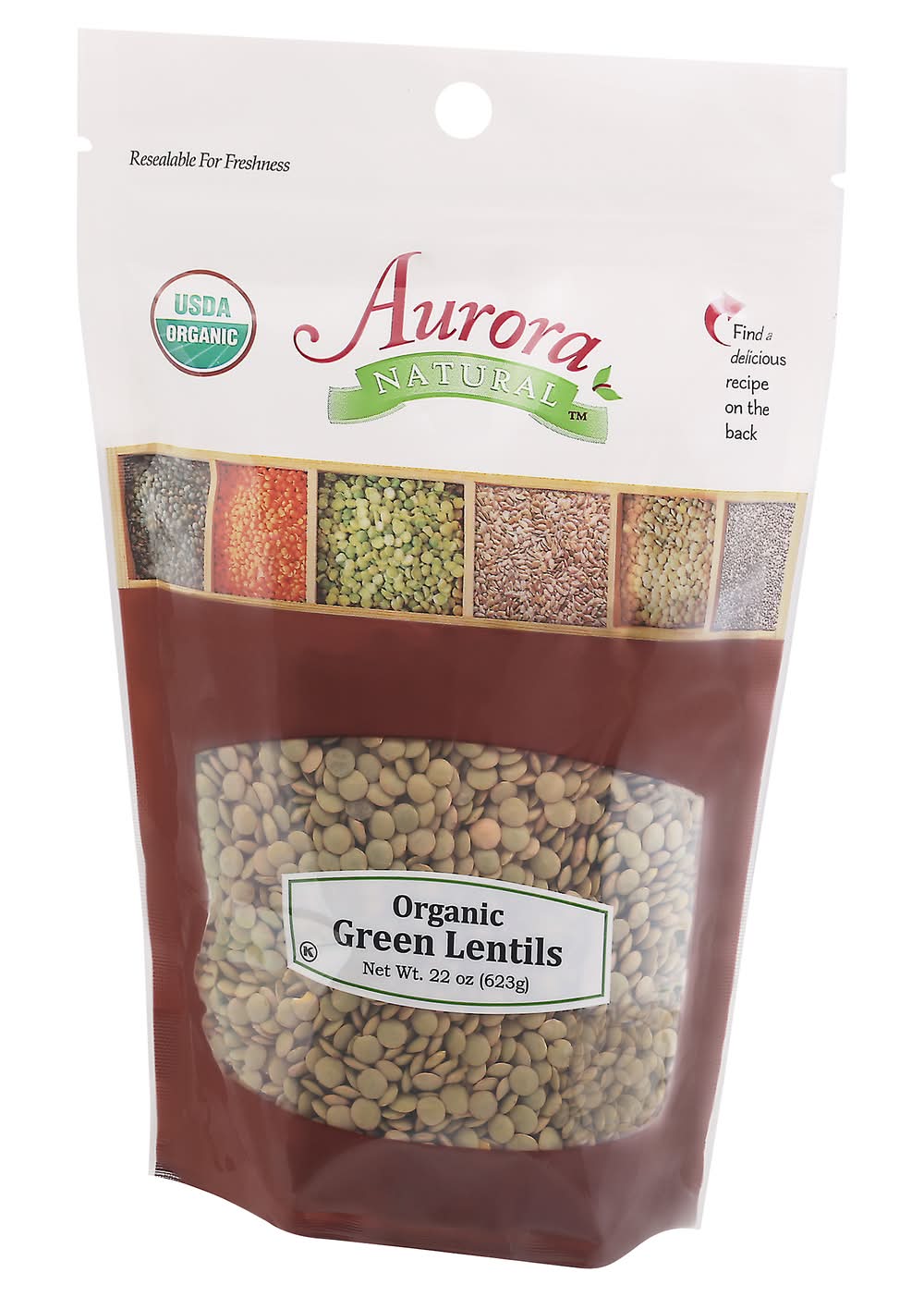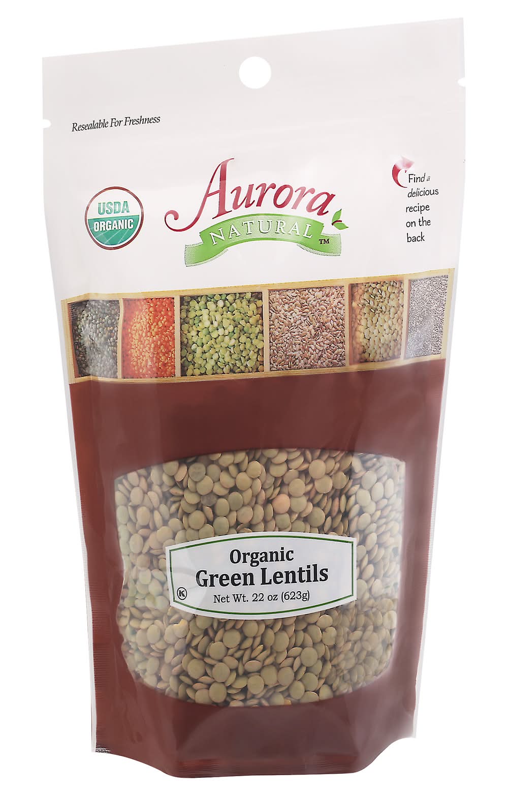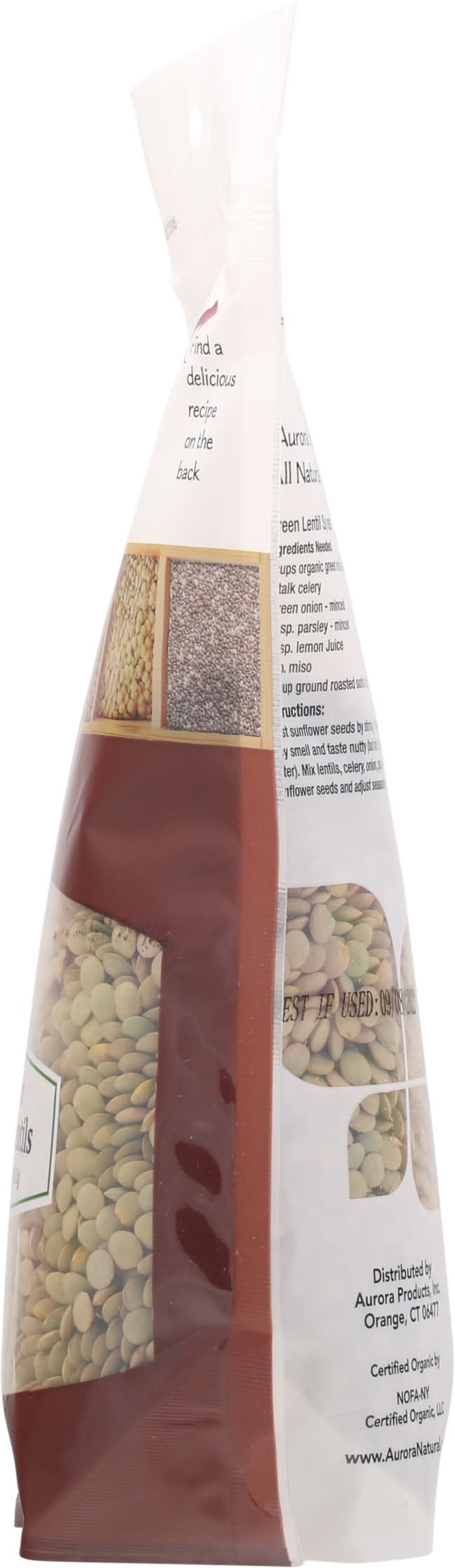 USDA Organic. Certified Organic by NOFA-NY; Certified Organic, LLC Nutrition facts for Organic Green Lentils (Only). Find delicious recipe on the back. Aurora is passionate about our people, community, and quality of our All Natural product line. We offer only the best all natural foods. Enjoy! Stephanie. www.AuroraNatural.com Resealable for freshness. This bag was made in the USA. Product of USA/Canada. This bag was made in the USA. Aurora Products, Inc., Orange, CT, 06477