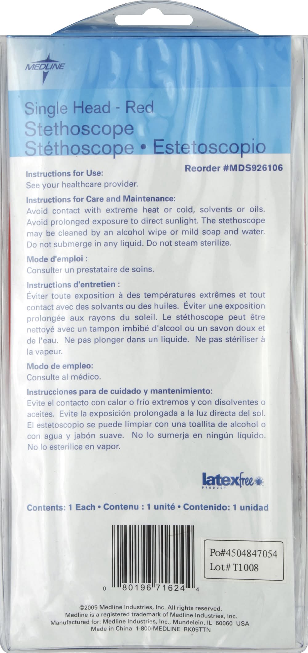 Stethoscope, Single Head, Red MEDLINE INDUSTRIES,