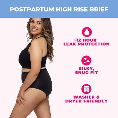 PROOF Postpartum Underwear Super Heavy High Waisted Briefs, L, Black