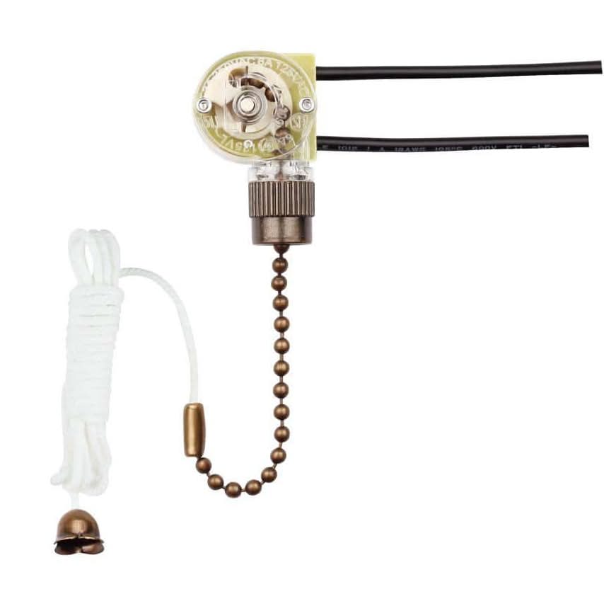 Bring new life to your ceiling fan with the Fan Light Switch. A cost-effective alternative to buying a new fan, this easy-to-install fan light switch features two wires to control lighting options. The beaded pull chain has an antique brass finish and allows for easy manual operation. Color: Brass