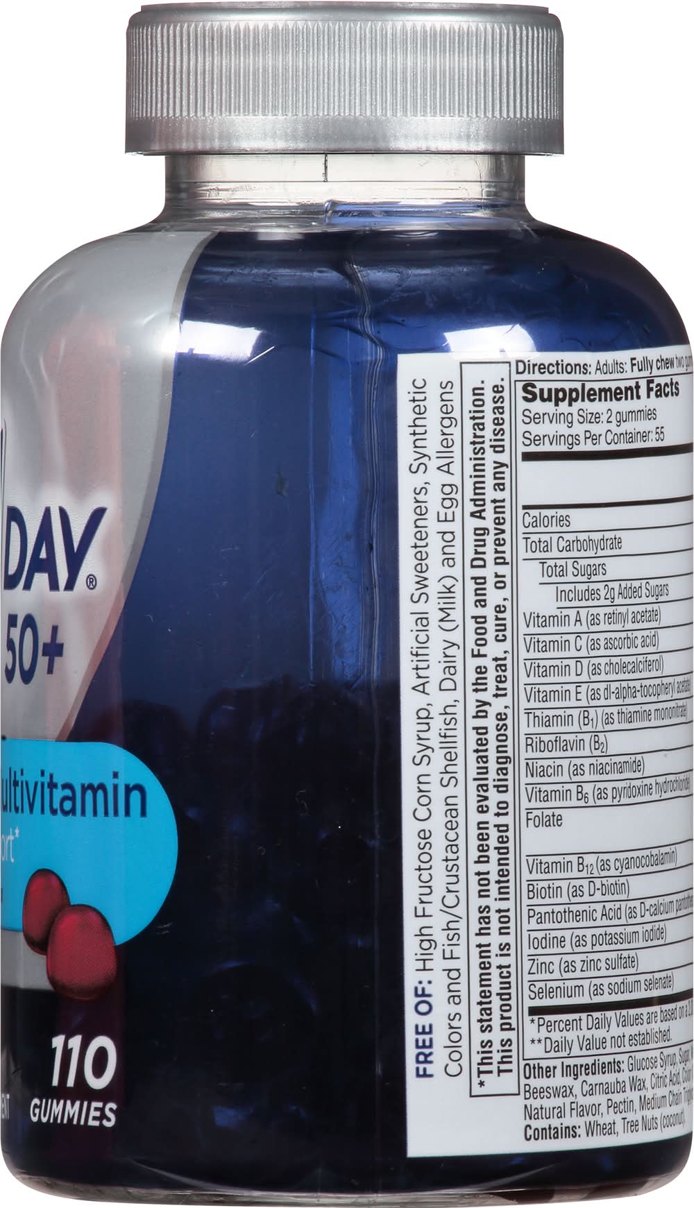 Multivitamin/Multimineral Supplement. Super 8 B vitamin Complex. Free of: high fructose corn syrup, artificial sweeteners, synthetic colors and fish/crustacean shellfish, dairy (milk) and egg allergens. Advanced multivitamin with brain support. Questions? 1-800-800-4793. (This statement has not been evaluated by the Food and Drug Administration. This product is not intended to diagnose, treat, cure, or prevent any disease.) Product of Switzerland Size: 110 CT