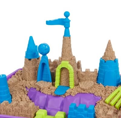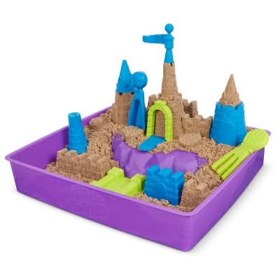 Experience the magic of the beach anywhere with the Playset! This playset includes 2.5lbs of Kinetic Beach Sand and everything you need to create epic sandcastles. Unfold the box to discover a sandy play space, perfect for building sandcastles both indoors and outdoors! Made with larger grains of natural sand, Kinetic Beach Sand provides a unique sensory experience. Utilize the 9 castle-themed molds on the Kinetic Sand two-tiered tray to build sandcastles, towers, walls, bridges, and more! Get ready to design your castle, your tools double as decorations for your castle. The 2 multi-use Kinetic Sand tools are perfect for cutting, digging, raking, and shoveling your moldable sand. Cleaning up is a breeze! Kinetic sand sticks to itself for easy clean-up. The Deluxe Beach Castle Playset comes with a lid for easy storage. Close it up and store to use again and again for even more fun! More engaging than arts and crafts modeling clay, this magic sand molds effortlessly and never dries out, allowing for hours of independent play. Not only is the playset a great alternative to arts and crafts modeling clay, but it's also a great addition to your craft table, kids activities time and montessori toys! Perfect cool toys for girls and boys to encourage independent and imagination building. For more Kinetic Sand fun, refill your Kinetic Sand playset with the 2.5lb Kinetic Sand bulk bags of colored sand (sold separately)! Bring the excitement of the beach home and build your own sandcastles with the Kinetic Sand Beach Sand Kingdom!• Includes: 2.5lb Kinetic Sand, 1 Castle Base Mold, 1 Tower Mold, 1 Wall Mold, 1 Turret Mold, 1 Bridge Mold, 1 Knife/Flag, 1 Rake/Decoration, 1 Scoop/Decoration, 1 Draw Bridge, 1 Reusable Tray with Lid