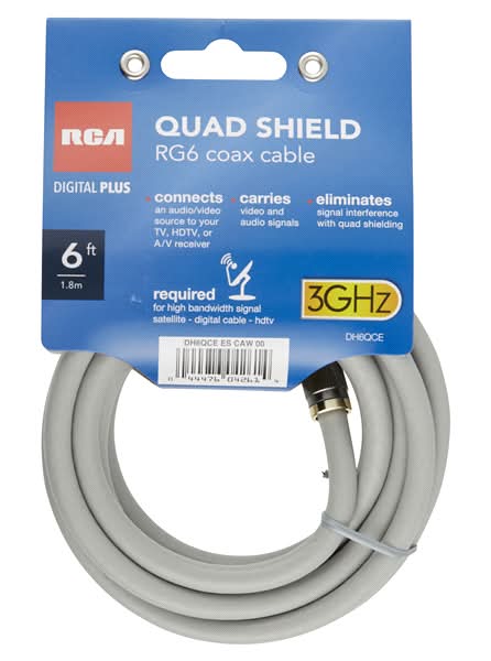 RCA Digital Plus Quad-Shield Rg6 Coax Cable, 6 ft