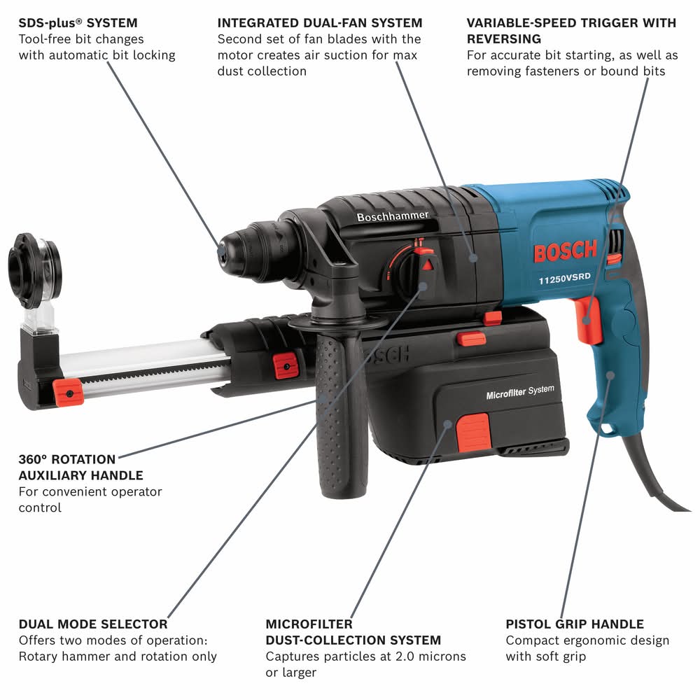 Bosch Sds-Plus Bulldog Rotary Hammer With Dust Collection, 7/8 In. (7.4 lbs)