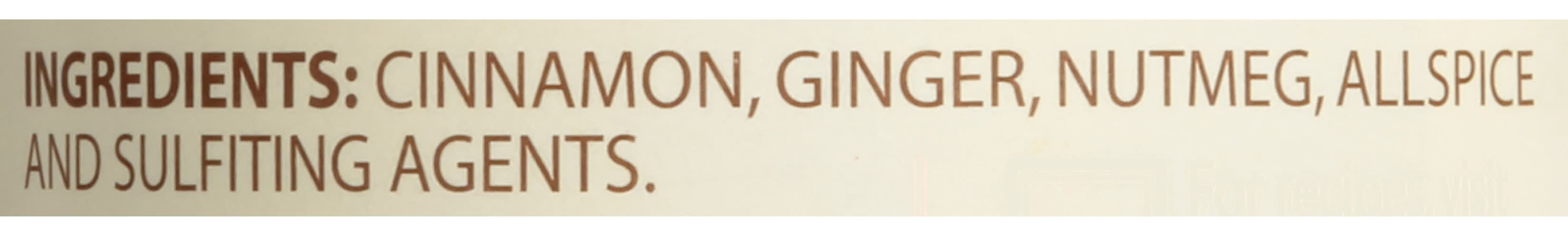 Cinnamon, Ginger, Nutmeg, Allspice and Sulfiting Agents.
