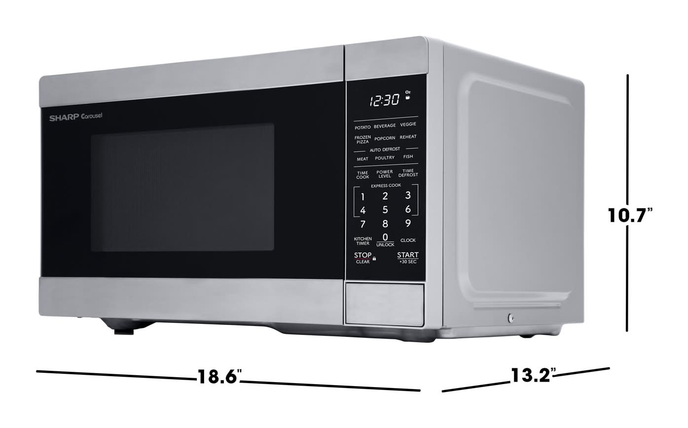 0.9 cu ft, 900 Watt, Microwave Oven by Sharp. Convenient +30 Key for Instant Start and Adding Time. Easy-to-Use Preset Buttons for Popular Foods and Beverages. Auto Defrost for Quick and Accurate Thawing. Express Cook for Single Touch Cooking for Up-To 6 Minutes. Premium White LED Display is Easy to Read. 10.6 in Carousel® Turntable for Even Cooking. Stylish White Interior. For CA Residents Only: WARNING: This product can expose you to chemicals including Lead which are known to the State of California to cause cancer and birth defects or other reproductive harm. For more information go to www.P65Warnings.ca.gov.