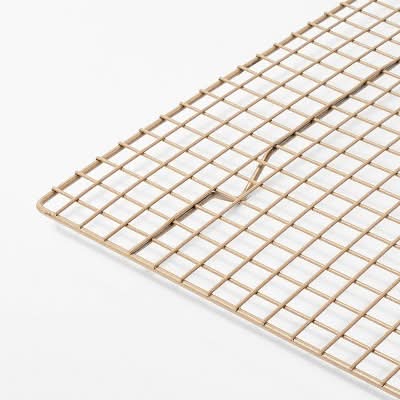 Made from carbon steel that heats evenly and resists warping, this gold-finish cooling rack features a smooth, easy-to-clean surface for convenient use. The rack is oven safe up to 450 degrees Fahrenheit, so you can also use it for baking, and the dishwasher-safe construction allows for quick and easy cleaning. Color: Gold