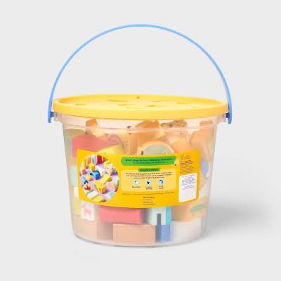 Inspire your little one to create using their imagination with the Wooden Stacking Blocks Set from Gigglescape™. Designed with no rough edges, this set of 100 colorful wooden blocks features 10 animal figures, including a lion, snail, koala and more. This set comes in a storage bucket with a shape-sorting lid, plus, it has a booklet full of fun ideas to get them started on building.