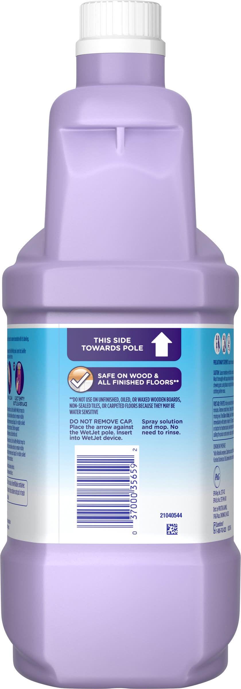 Directions for use: Usage of instructions:Do not remove cap. Place the arrow against the WetJet pole. Insert into WetJet device. Spray solution and mop. No need to rinse. Directions for Household Use: It is a violation of Federal law to use this product in a manner inconsistent with its labeling. General Cleaning: Do not remove cap. Place the arrow against the Swiffer WetJet pole. Insert into Swiffer WetJet device. Spray solution and mop. No need to rinse. 1. Insert. 2. Spray & clean. 3. Eject empty bottle & replace. To Sanitize: For use on hard non-porous floors. Use the Swiffer WetJet mop to spray floor until thoroughly wet. Let stand for 5 minute before mopping, then remove excess liquid. For visibly soiled floors, clean before following sanitizing instructions. Effective against staphylococcus aureus and klebsiella aerogenes. To Disinfect: For use on hard non-porous floors. Use the Swiffer WetJet mop to spray floor until thoroughly wet. Let stand for 10 minutes before mopping, then remove excess liquid. For visibly soiled floor, clean before following disinfection instructions. Limited disinfectant. Effective against salmonella enterica. Do not use on unfinished, oiled or waxed wood floors. - Directions: not remove cap. Place the arrow against the WetJet pole. Insert into WetJet device. Spray solution and mop. No need to rinse. Directions for Household Use: It is a violation of Federal law to use this product in a manner inconsistent with its labeling. General Cleaning: Do not remove cap. Place the arrow against the Swiffer WetJet pole. Insert into Swiffer WetJet device. Spray solution and mop. No need to rinse. 1. Insert. 2. Spray & clean. 3. Eject empty bottle & replace. To Sanitize: For use on hard non-porous floors. Use the Swiffer WetJet mop to spray floor until thoroughly wet. Let stand for 5 minute before mopping, then remove excess liquid. For visibly soiled floors, clean before following sanitizing instructions. Effective against staphylococcus aureus and klebsiella aerogenes. To Disinfect: For use on hard non-porous floors. Use the Swiffer WetJet mop to spray floor until thoroughly wet. Let stand for 10 minutes before mopping, then remove excess liquid. For visibly soiled floor, clean before following disinfection instructions. Limited disinfectant. Effective against salmonella enterica. Do not use on unfinished, oiled or waxed wood floors. Storage/Disposal: Store in a cool place. Nonrefillable container. Do not reuse or refill this container. Wrap container and put in trash or offer for recycling if available. Storage recommendation: Storage/Disposal: Store in a cool place. Nonrefillable container. Do not reuse or refill this container. Wrap container and put in trash or offer for recycling if available.