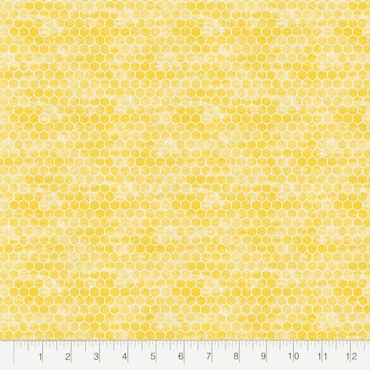This fun honeycomb printed fabric is ideal for a variety of projects.100% cotton. Use color-safe detergent and a dirt or dye absorbing sheet • Color: Yellow • Size: 18" x 21"