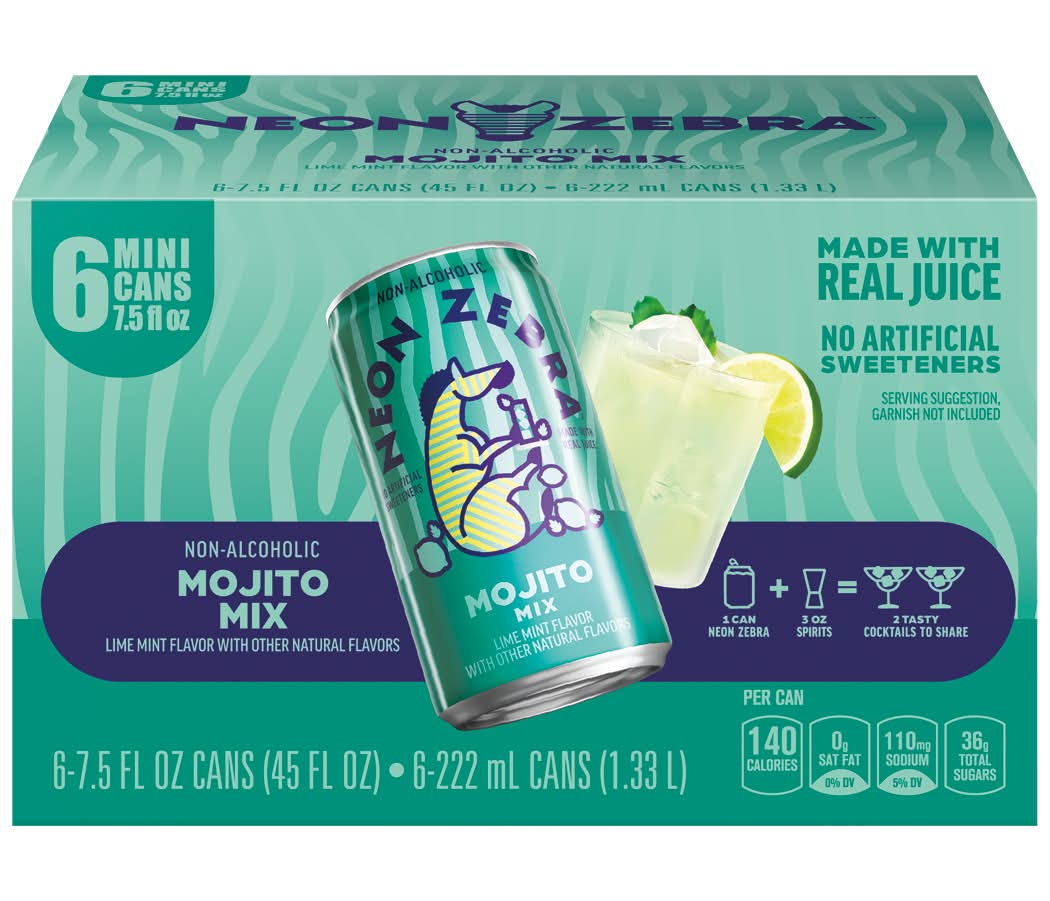 Neon Zebra Mojito Mix, Lime - Mint (6 x 7.5 fl oz)