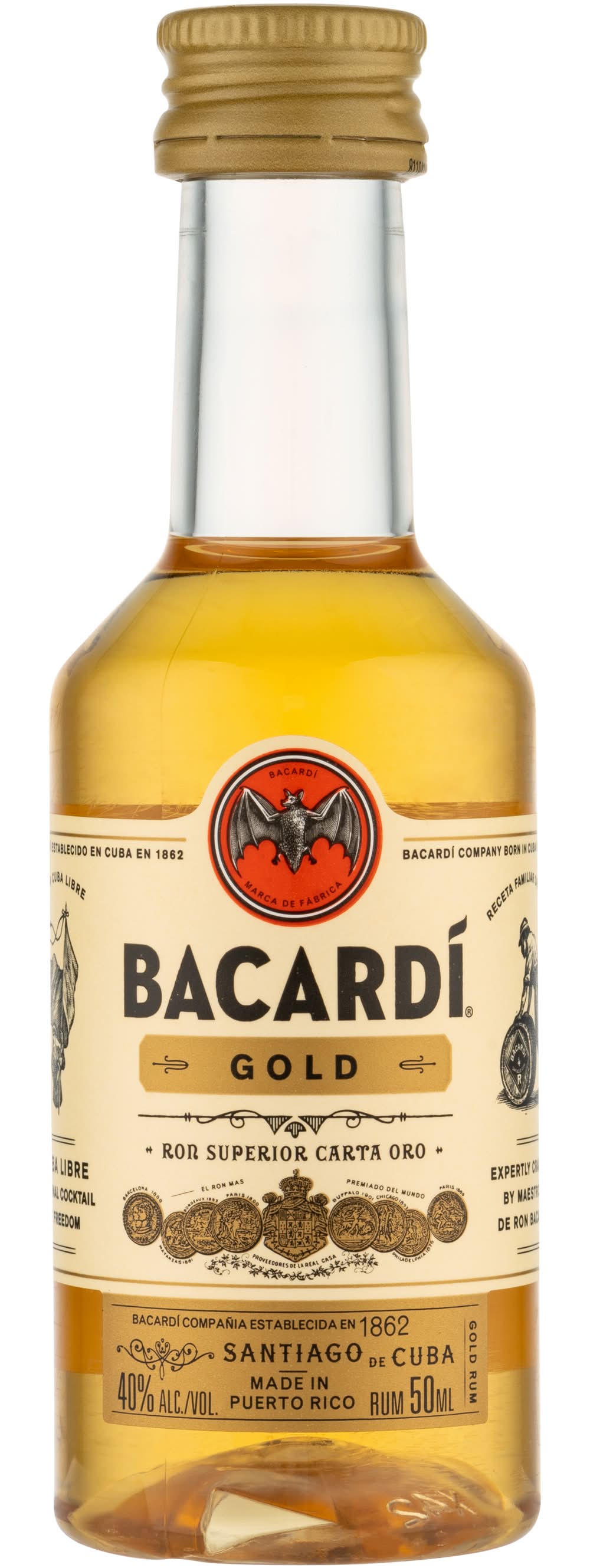 BACARD Gold rum is the proud creation of the Maestros de Ron Bacard, charcoal filtered, mellowed from one to two years in toasted American white oak barrels and blended. The liquid brings depth and character to classic rum cocktails, like the Cuba Libre, while maintaining a smooth finish. • Alcohol by volume: 40% • Bacardi, Catano, Puerto Rico