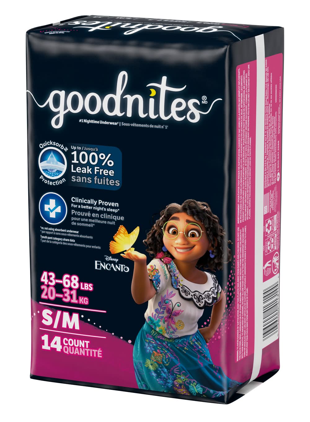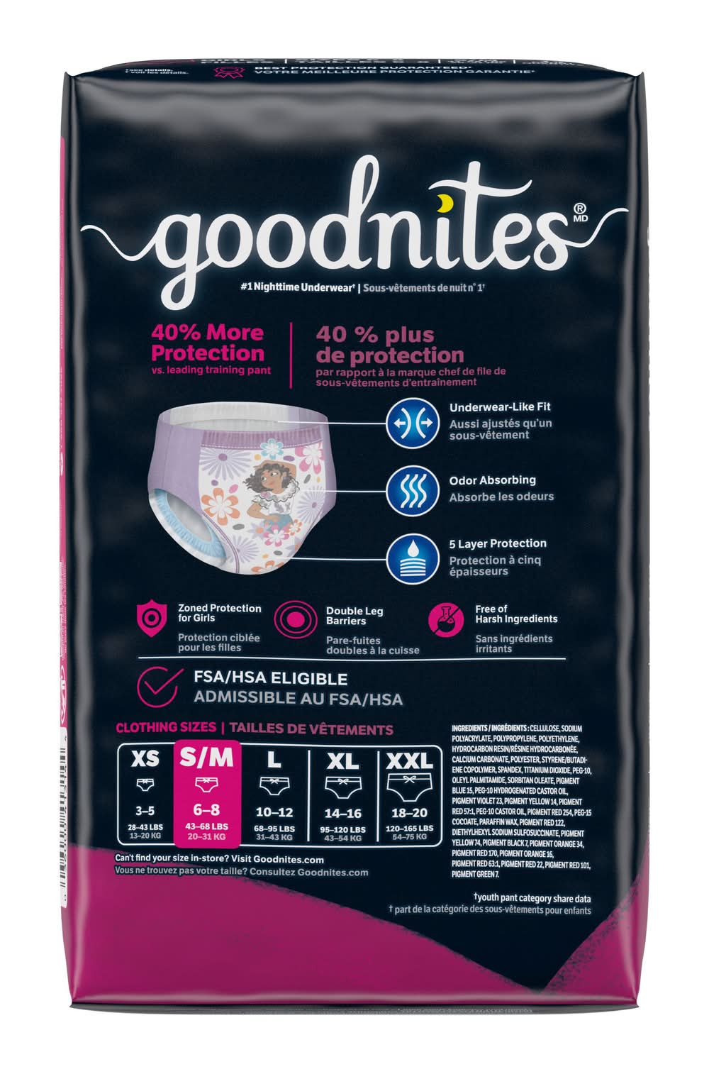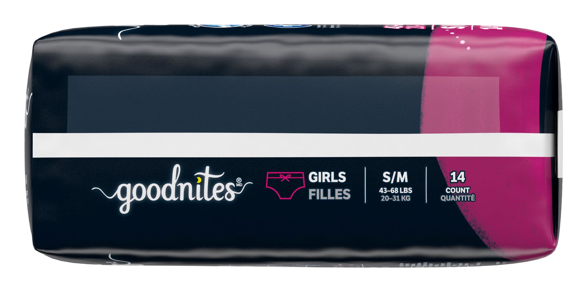 Goodnites Girls' Nighttime Bedwetting Underwear, Size S/M (43-68 lbs), 14 Ct • Size: S/M • Kimberly-clark Global Sales, Llc, Neenah, WI, 54956