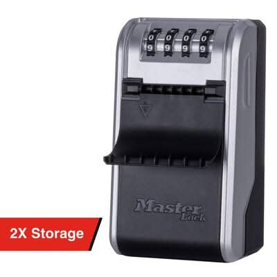 The Master Lock Wall Mount Lock Box was designed with real estate professionals, property managers, and construction industry experts in mind. This upgraded design incorporates feature improvements based on professionals' needs to operate their businesses smoothly. The innovative built-in bin securely holds keys in place to prevent jamming, while its expanded storage capacity accommodates not only keys but also fobs and access cards. A new weatherproof dial cover provides added protection against harsh weather and demanding job-site conditions, while the solid metal body defends against tampering. For added convenience, the wall mounting installation provides a permanent solution, giving teams and clients reliable access whenever needed. The lever-free design streamlines opening and closing, making it quicker and easier than ever. Whether it's your home, business, Airbnb/VRBO, or job site, this lock box offers a reliable and convenient solution for granting access to trusted individuals. Size: Large