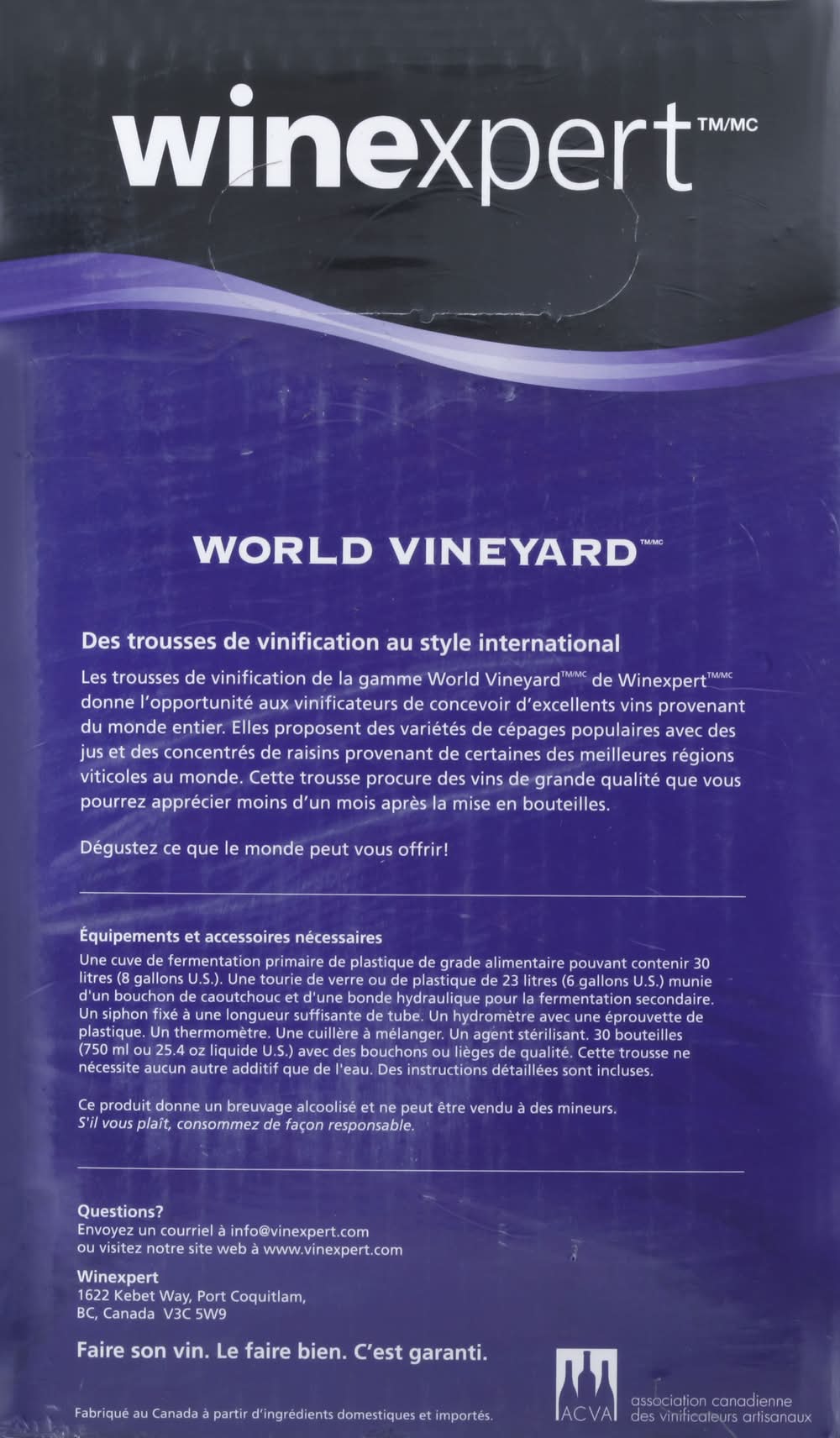 Equipment and Supplies Required: Food grade plastic fermentor of no less than 8 US gallons (30 litres) capacity. 6 US gallon (23 litre) plastic or glass secondary fermentor (carboy) with bung and airlock. Syphon rod with sufficient tubing. Hydrometer with test jar. Thermometer. Mixing spoon. A high-quality winemaking cleaner/sanitizer for cleaning. 30 wine bottles (750 ml size or 25.4 fl oz US) with good quality corks or stoppers. This kit requires no additives other than water. Detailed instructions enclosed. This product produces an alcoholic beverage and is not to be sold to minors. Please enjoy responsibly.