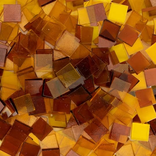 Small Amber Mosaic Stained Glass Squares, 8oz. at Michaels.com. These beautiful mosaic squares showcase vibrant hues that are ideal for your next project. Use them to create patterns, decorative boxes, custom frames, and more! Amber mix Color: Brown-yellow