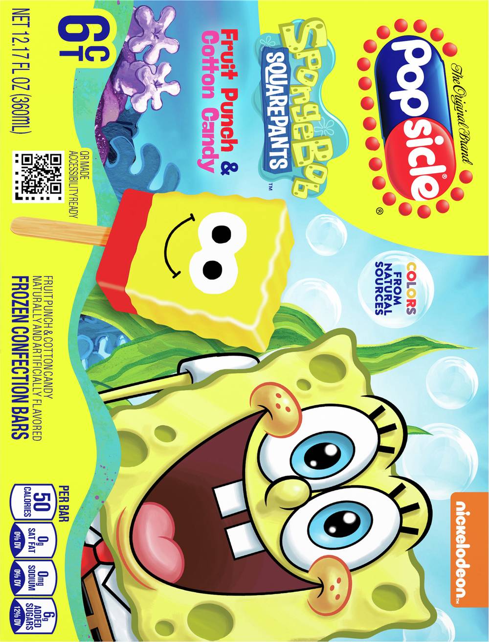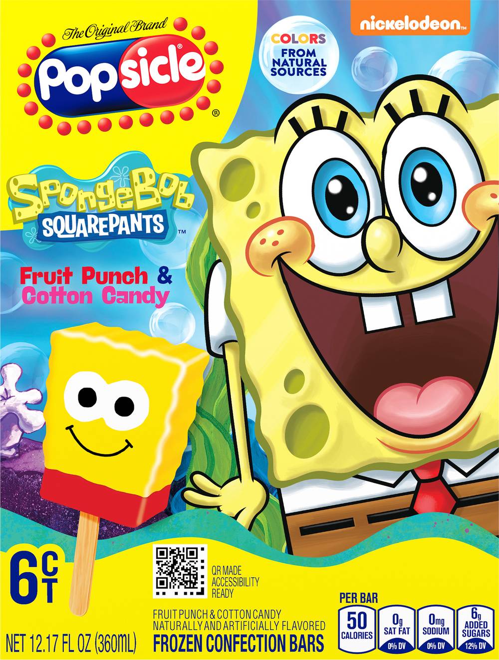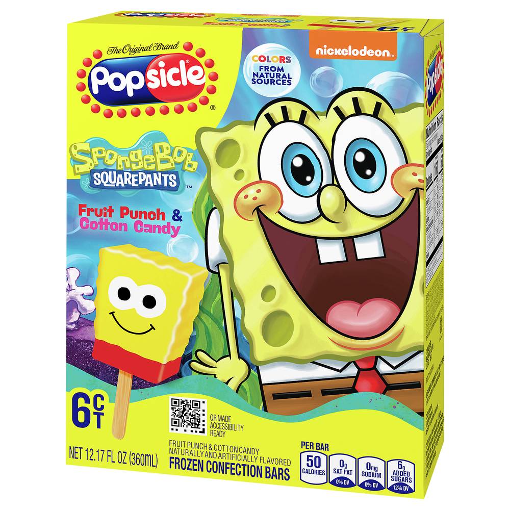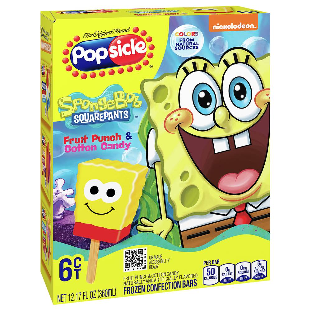 Popsicle Spongebob Squarepants Frozen Confection Bars, Fruit Punch-Cotton Candy (12.17 fl oz, 6 ct)