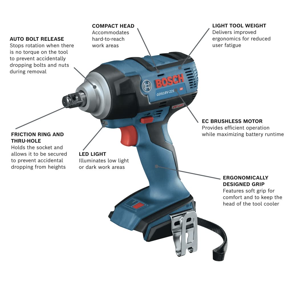 Bosch 18V Ec Brushless Impact Wrench With Friction Ring and Thru Hole, 1/2 Inch (2.77 lbs)