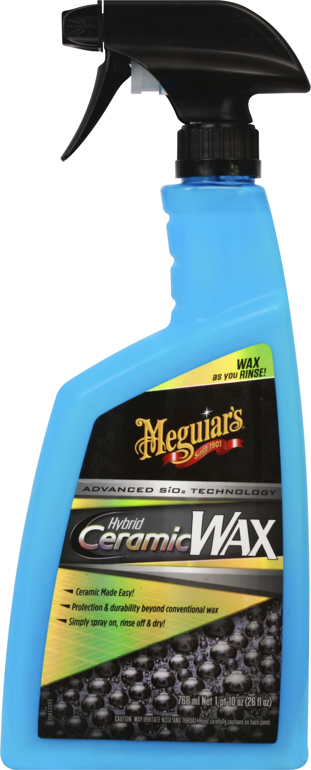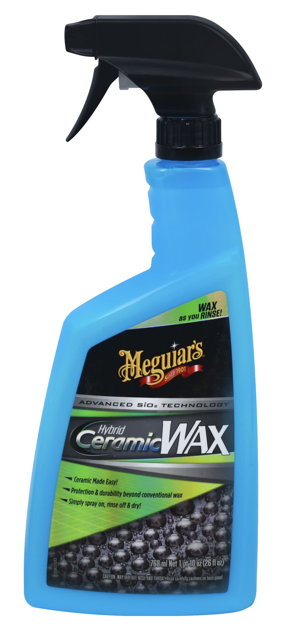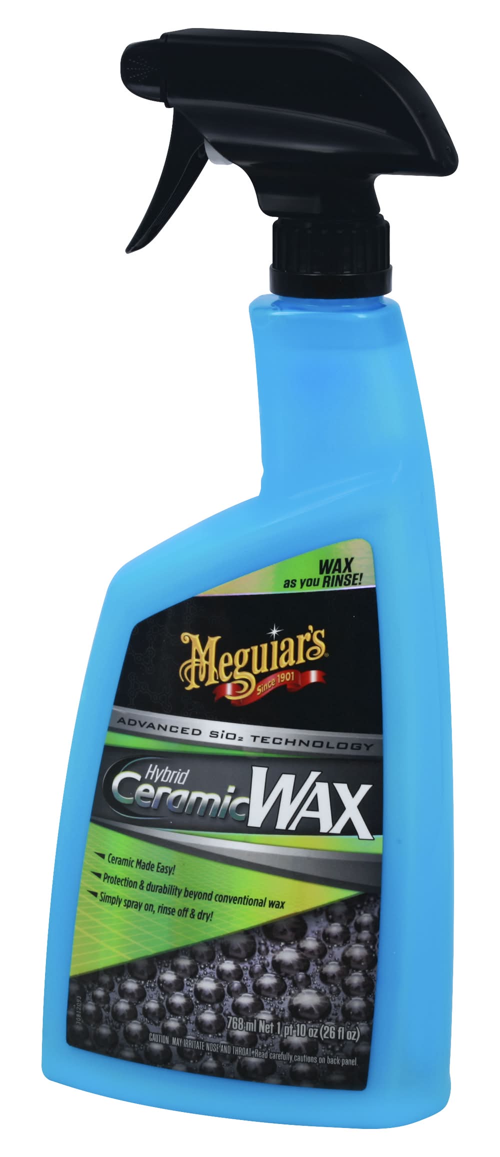Wax as you rinse! Advanced SiO2 technology. Ceramic made easy! Protection & durability beyond conventional wax. Simply spray on, rinse off & dry! Wax by just spraying on, then rinsing off? Yes! It’s that easy! No rubbing. No curing. No buffing. Conventional? No. Sensational? Yes! Sophisticated, hybrid ceramic chemistry uses a thick, high-viscosity formula & the power of your rinse water to help coat your car's exterior surfaces. You can actually see the extreme water beads form as you rinse! Then, simply dry as normal & your surfaces now have enhanced, hybrid SiO2 ceramic protection that beads water like crazy! Reflect your passion. Serious car care for car crazy people! Meguiars.com. Meguiars.com/international. For free, expert car care advice 1-800-347-5700. Made in USA with globally sourced materials.