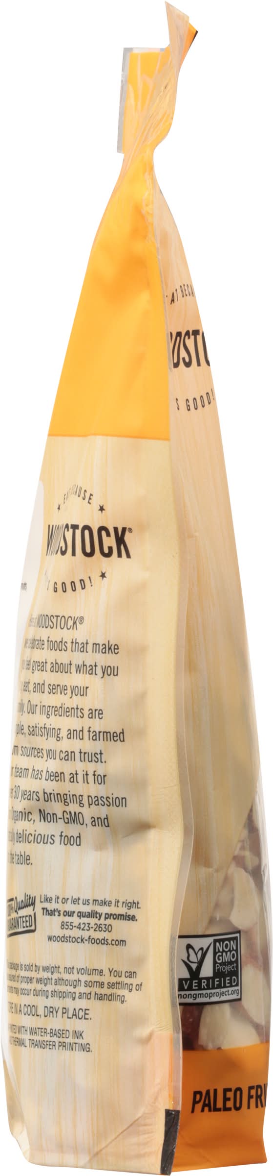 See nutrition information for fat content. Paleo friendly. Non-GMO Project verified. nongmoproject.org. Just nuts. Eat because it's good! Plant protein. Superfood. Here at Woodstock we celebrate foods that make you feel great about what you buy, eat, and serve your family. Our ingredients are simple, satisfying, and farmed from sources you can trust. Our team has been at it for over 30 years bringing passion for Organic, Non-GMO, and totally delicious food to the table. This package is sold by weight, not volume. You can be assured of proper weight although some settling of contents may occur during shipping and handling. 100% Quality Guaranteed: Like it or let us make it right. That's our quality promise. 855-423-2630. woodstock-foods.com. Woodstock-foods.com. Let's get social! (at)woodstockfoods. Instagram. Facebook. Twitter. Non BPA bag (Packaging produced without intentionally added bisphenol-A (BPA)). Printed with water-based ink and thermal transfer printing. Product of USA. Woodstock,