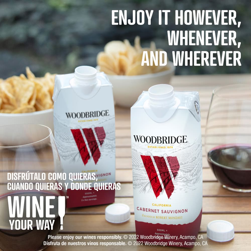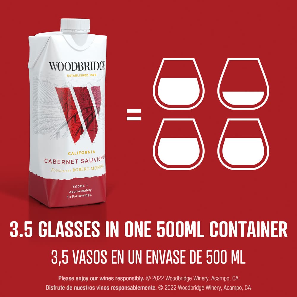 Woodbridge Cabernet Sauvignon Red Wine presents aromas and flavors of blackberry, dark cherry, toasted marshmallow, and spice. This medium-bodied California red wine pairs well with grilled meats. • Alcohol by volume: 13.5% • 0