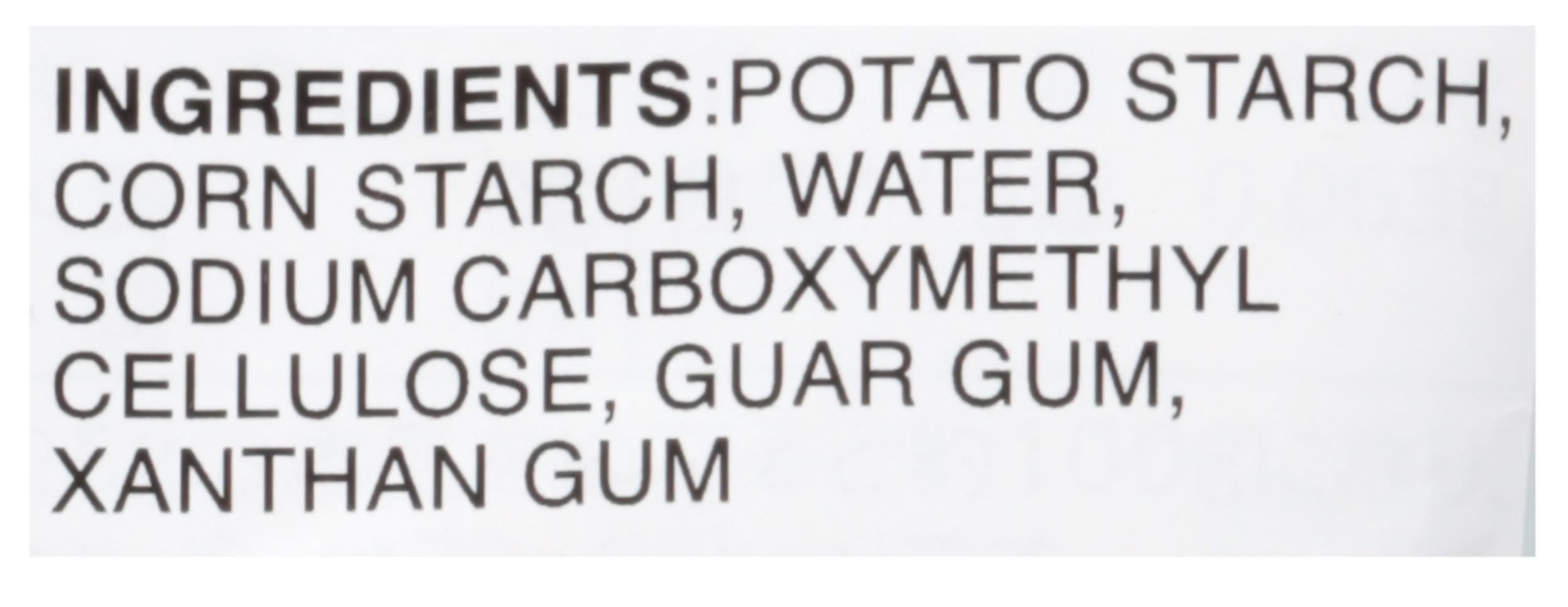 Potato Starch, Corn Starch, Water, Sodium Carboxymethyl Cellulose, Guar Gum, Xanthan Gum