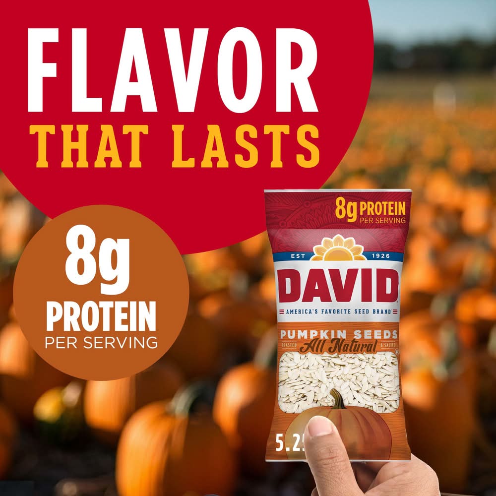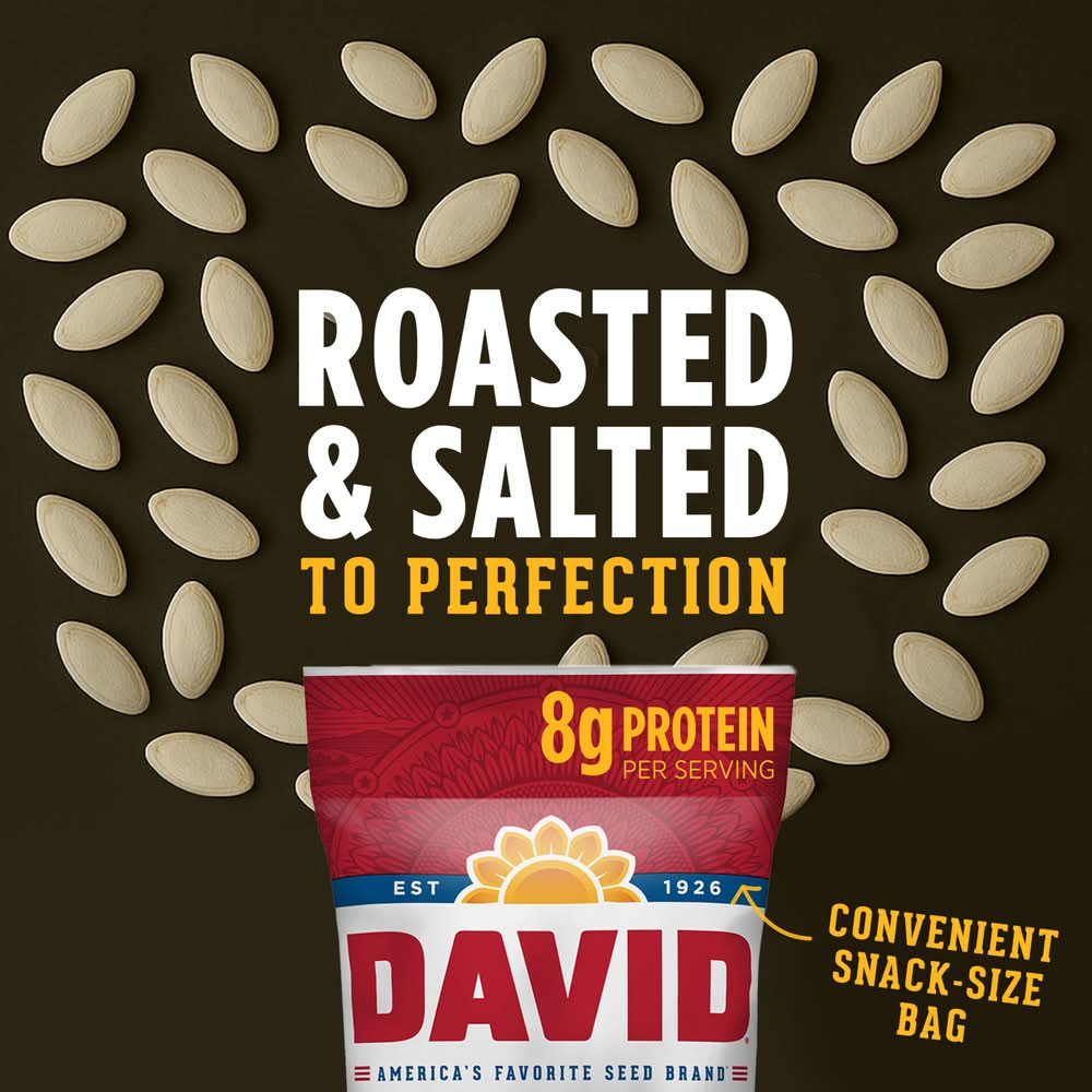 Your David All Natural Roasted & Salted Pumpkin Seeds delivery options may vary depending on where you are in a city. Enter your address to browse David All Natural Roasted & Salted Pumpkin Seeds delivery options near you.
