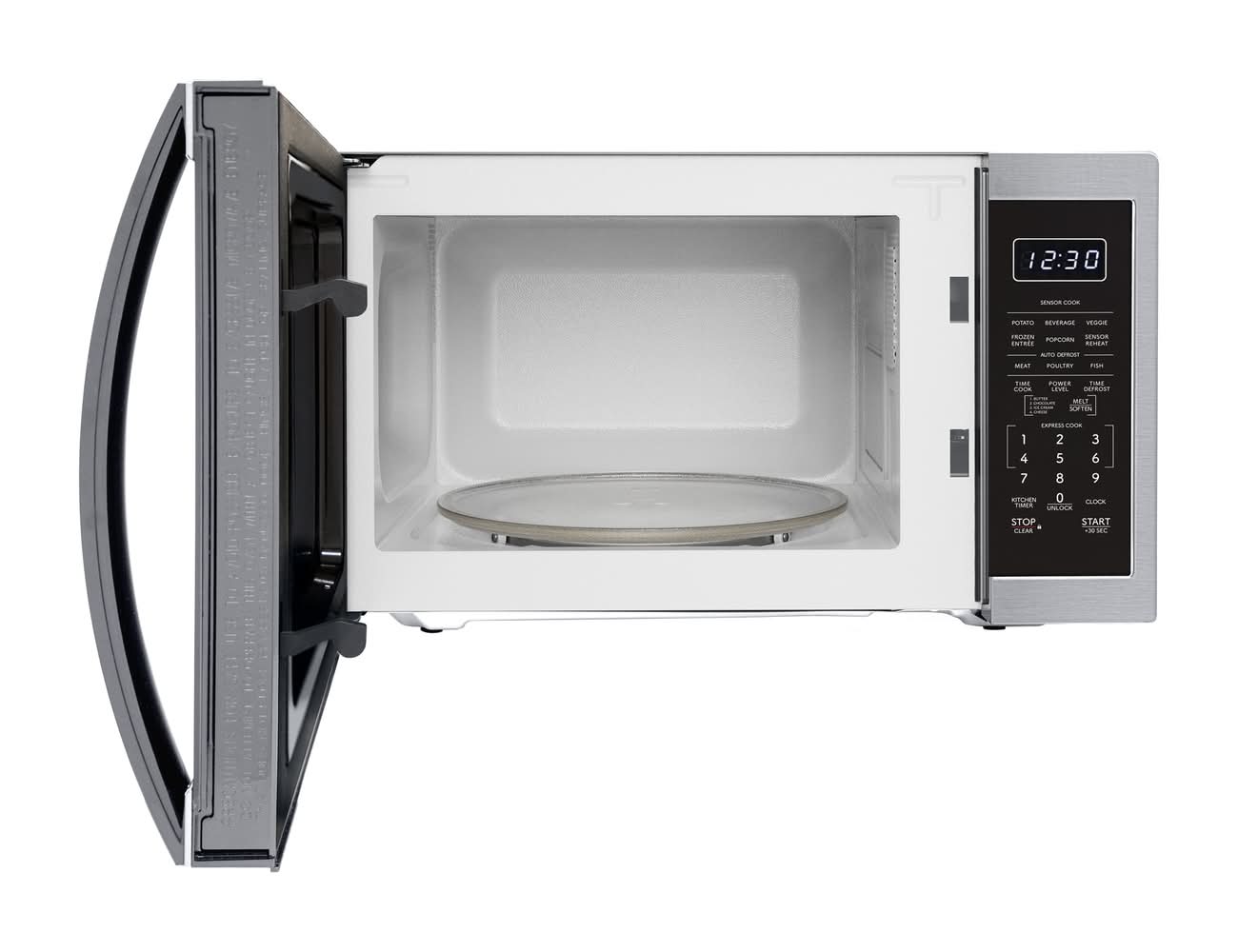 1.4 cu ft, 1100 Watt, Microwave Oven by Sharp. Sensor Cook Menu for Precise Cooking and Reheating. Convenient +30 Key for Instant Start and Adding Time. The Melt/Soften Controls Will Melt Cheese and Even Soften Ice Cream. Conve12.4 in Carousel® Turntable for Even Cookingnient +30 Key for Instant Start and Adding Time. Easy-to-Use Preset Buttons for Popular Foods and Beverages. Auto Defrost for Quick and Accurate Thawing. Express Cook for Single Touch Cooking for Up-To 6 Minutes. Premium White LED Display is Easy to Read. For CA Residents Only: WARNING: This product can expose you to chemicals including Lead which are known to the State of California to cause cancer and birth defects or other reproductive harm. For more information go to www.P65Warnings.ca.gov.