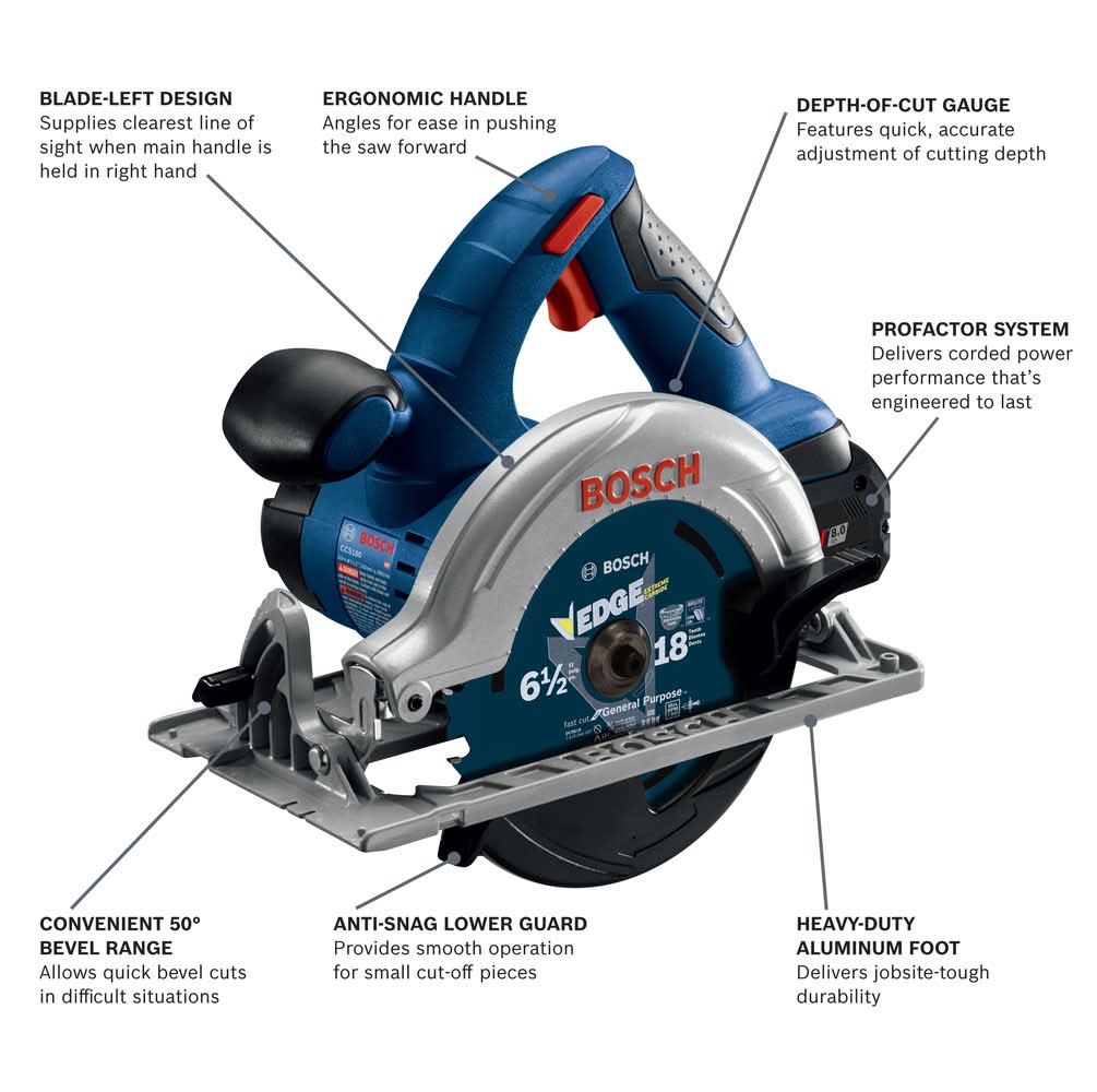 Bosch 18V Blade Left Circular Saw Kit, 6-1/2 In (6.7 lbs)