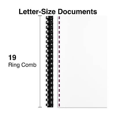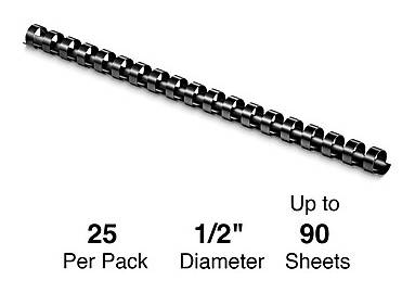 Give presentations, reports and other booklets a professional touch with these Staples black plastic comb binding spins. Group documents together with these comb binding spines. The durable plastic construction stands up to frequent page turns, while the sleek black color adds a perfect finishing touch to marketing materials or presentations. Each spine holds up to 90 pages securely, providing flexible binding options. Compatible with most standard comb binding machines, these Staples binding spines are easy to load and use. - These 1/2 plastic binding spines provide a custom look to your official documents - Convenient 90-sheet capacity - Made of plastic in black color - It will not scratch, chip, peel or discolor - Easy to add and remove pages - Compatible with any standard 19-ring comb-binding system - Diameter for this product measures 1/2