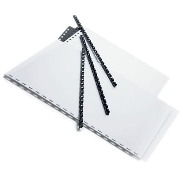 19-ring combs made from durable materials! These 19-ring combs are made from sturdy plastic to keep your documents and reports secure. No page slippage or tearing, so your reports will stay neat and organized. Compatible with most comb-style binding machines. • Pack size: 25 • Color: Black