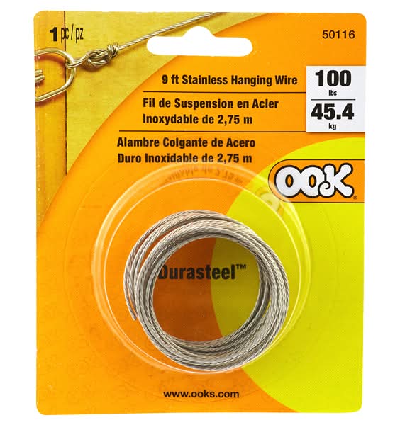 The OOK 9 ft. 100 lb. Stainless Steel Hanging Wire has a soft, flexible design that helps your hands stay clean and cut free. Made of stainless steel, the wire is great for hanging art projects and for fastening, craft and decorating applications. OOK Picture Hanging Wire is great for finishing up any at home or professional gallery. California residents see Prop 65 warnings. WARNING: Cancer and Reproductive Harm - www.P65Warnings.ca.gov