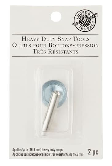 An essential tool for applying 5/8"" heavy duty snaps. Be sure to first test on a swatch of fabric and work on a firm, protected surface for best results. Applies 5/8" (15.8 mm) heavy duty snaps. 2 pieces. Loops & Threads Heavy Duty Snap Tools.