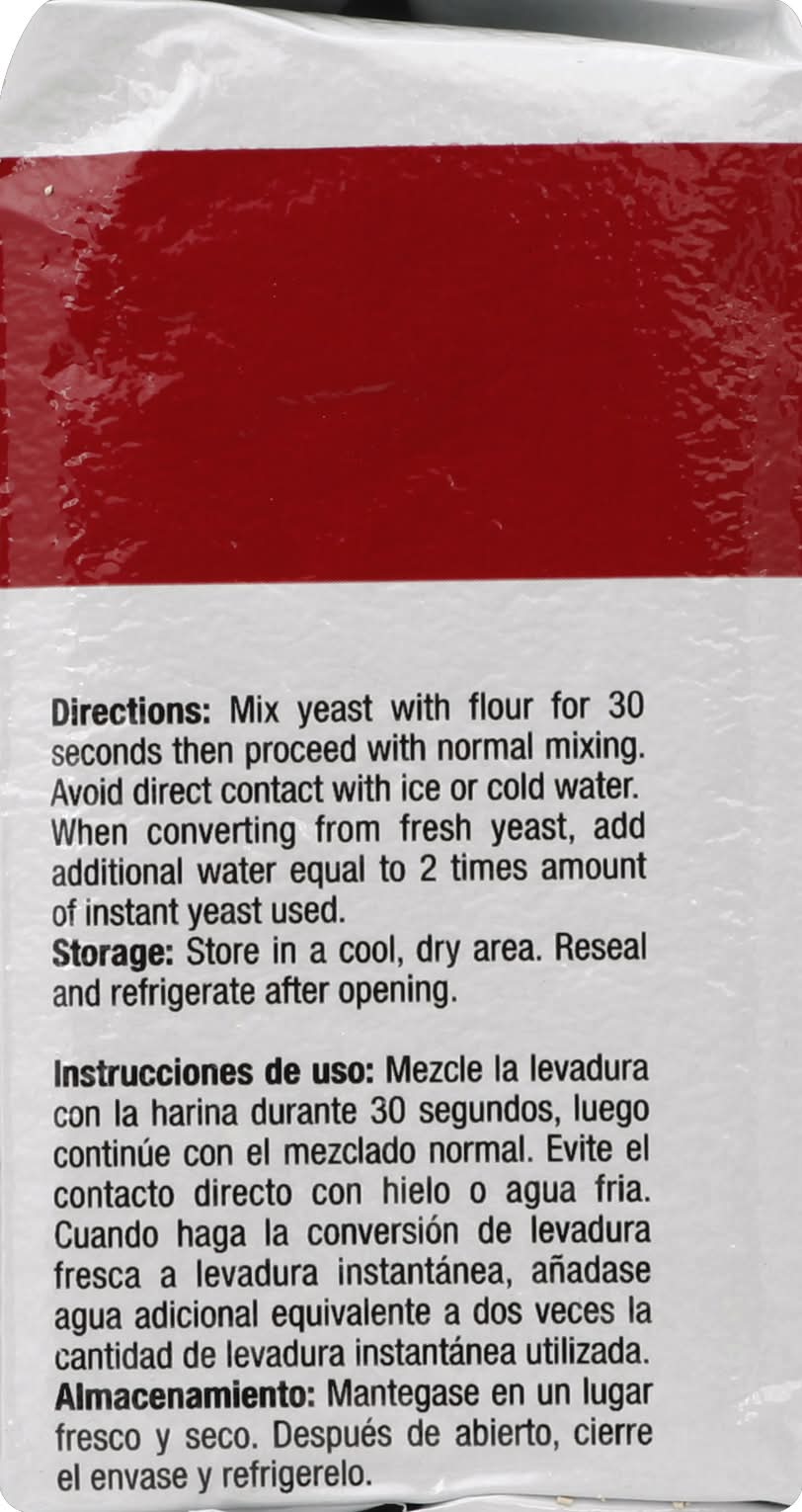 Mix yeast with flour for 30 seconds then proceed with normal mixing. Avoid direct contact with ice or cold water. When converting from fresh yeast, add additional water equal to 2 times amount of instant yeast used. Storage: Store in a cool, dry area. Reseal and refrigerate after opening.