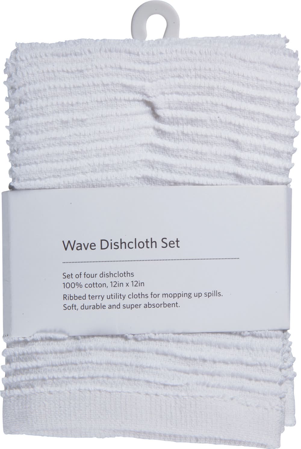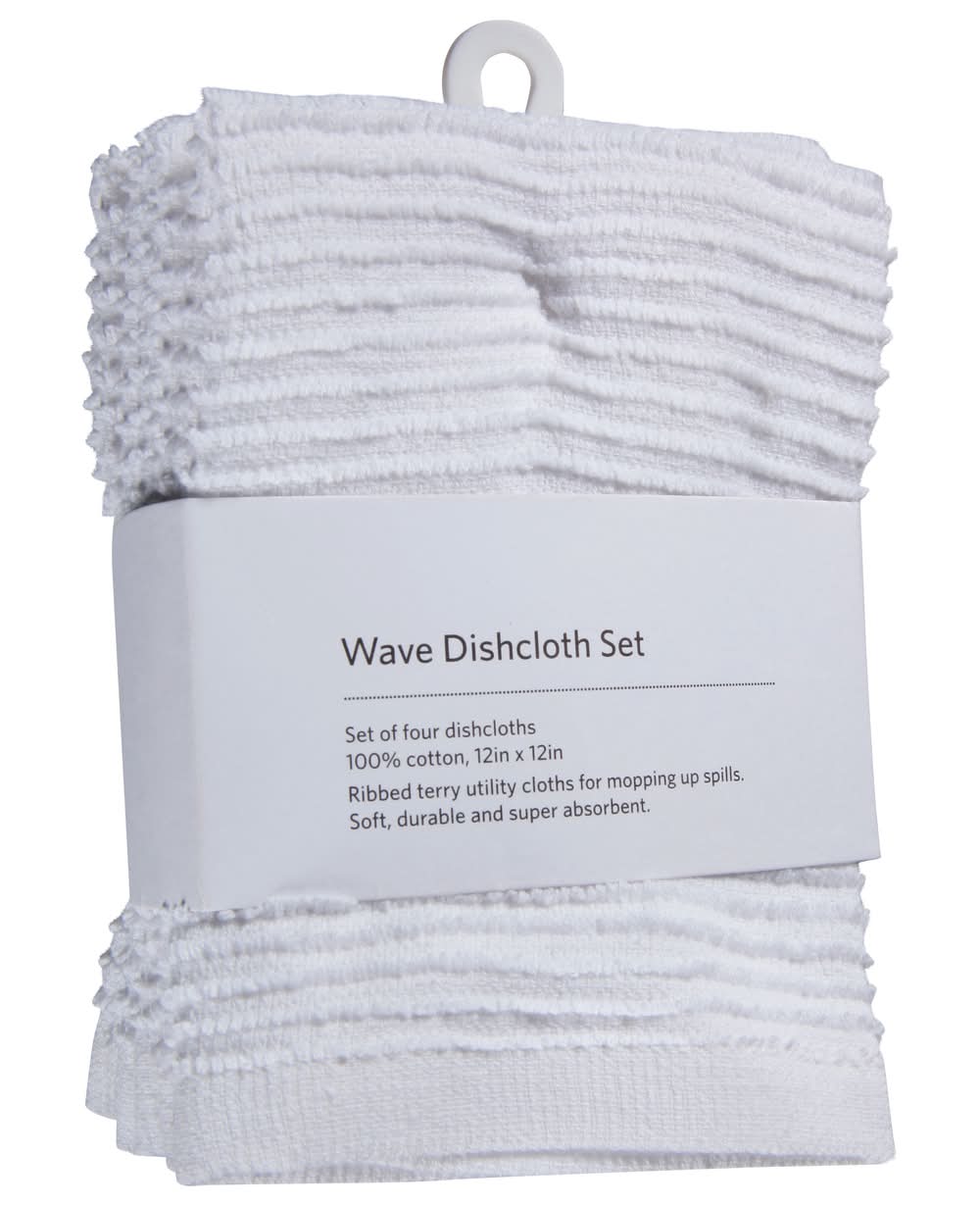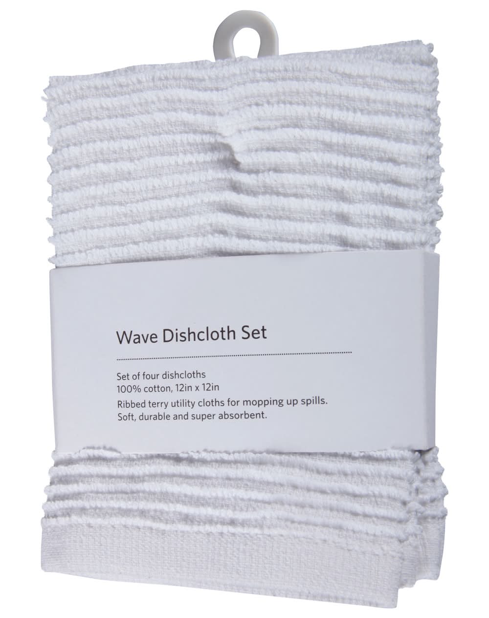 KAF Home Wave Dishcloth Set, 12 in × 12 in, White (4 ct)