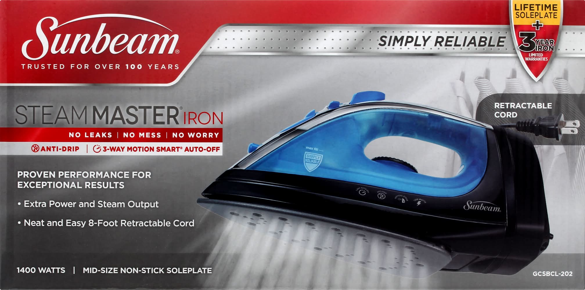 Sunbeam Steam Master Retractable Cord Iron, Size Medium, Blue & Black (1.34 kg)