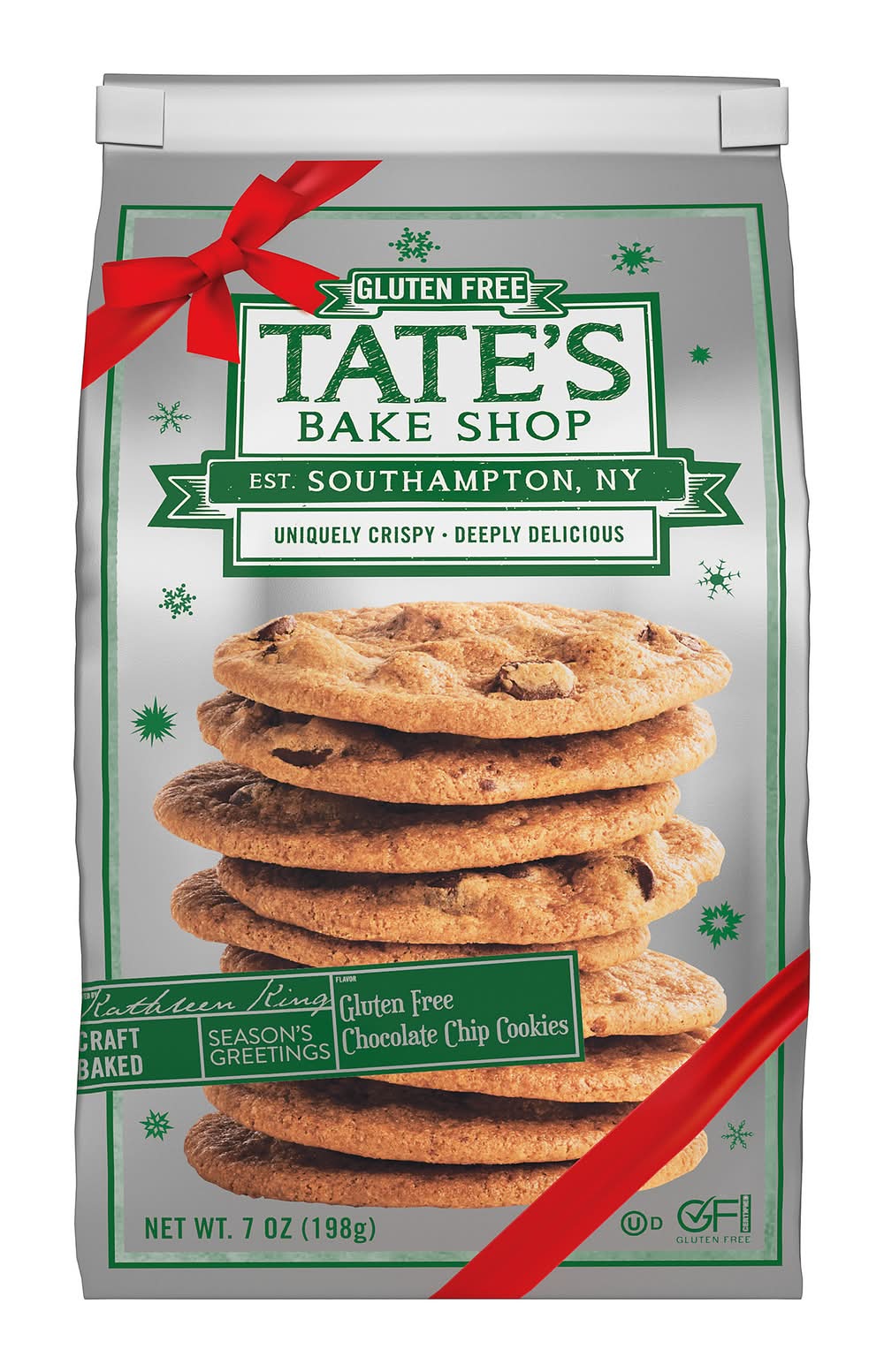 Enjoy delicious chocolate chip cookies minus the gluten in a bake shop quality snack with Tate's Bake Shop Gluten Free Chocolate Chip Cookies. So delicious you won't be able to tell the difference, these gluten free cookies are made with rice flour and offer a classic, buttery chocolate chip cookie flavor. These thin chocolate chip cookies are uniquely crispy and deeply delicious. Serve them on cookie trays as gluten free party snacks, or share the thin crispy chocolate chip cookies with friends and family who don't eat gluten. These baked cookies also work well crushed as a gluten free dessert topping. This reclosable bag keeps the crispy cookies protected and fresh. Tates Bake Shop, 43 North Sea Rd. Southampton, NY 11968,