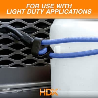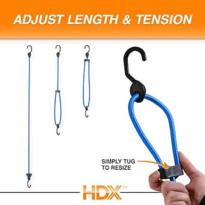 The HDX Super Strong Adjustable Bungee Cord is ideal for securing very light loads. These adjustable super strong bungees have twice the strength compared to a standard bungee and its adjustable length fits a variety of object sizes. The adjustable feature also makes tensioning easier to reduce the risk of popping off. Easily adjust the tension and length of the bungee with a simple pull. WARNING: CANCER AND REPRODUCTIVE HARM - WWW.P65WARNINGS.CA.GOV Color: Blue
