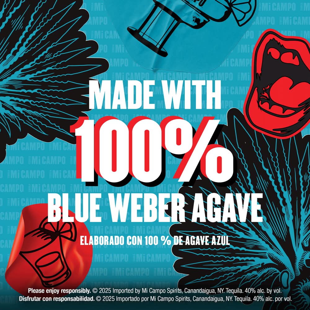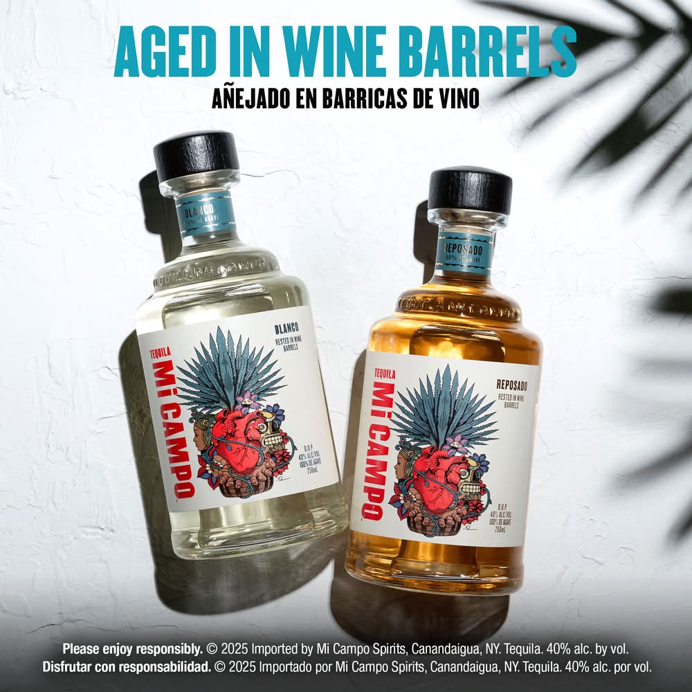 Rested in wine barrels. Mi campo comes from the heart. The illustration by mexico city artist raul urias depicts our passion for the art of creating tequila and our pride in the land from which it comes. We believe in improving on tradition, that's why we rest this tequila in wine barrels for a smoother finish. • Alcohol by volume: 40% • Mi Campo Spirits,