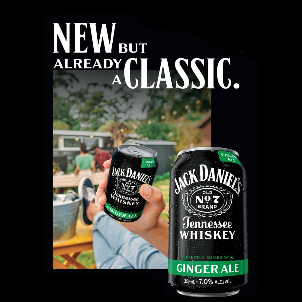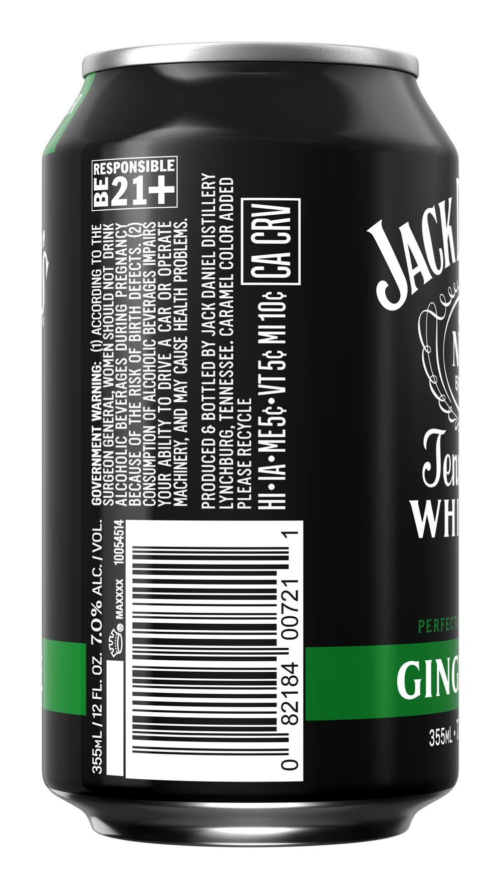 Jack Daniel's and Ginger Ale puts the Lynchburg tradition of mixing Tennessee Whiskey and Ginger Ale into a can, creating a ready to drink cocktail. Jack Daniel’s Tennessee Whiskey and refreshing Ginger Ale come together in perfect harmony, creating an easy to drink, smooth, balanced and refreshing canned drink. You can enjoy the convenient format of these specialty whiskey cocktails on the go, straight from the fridge, or right out of the cooler. Simply serve these alcohol beverages cold straight from the can or over ice, and always in good company. Add Jack Daniel's and Ginger Ale canned cocktails to your cooler alongside other alcohol drinks. If you want a whiskey cocktail that's ready to go, Jack Daniel’s has you covered. Carefully crafted. Perfectly mixed. Jack Daniel's and Ginger Ale is real Jack that's ready to go whenever you are. Live Freely. Drink Responsibly. • Flavor: Ginger ale • Pack size: 4 • Alcohol by volume: 7%