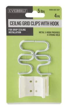 Use the Everbilt Light-Duty Ceiling Hooks for support in hanging lightweight items from ceiling grid tees. The metal 2.25 in. S-hooks work in the plastic clips that are secured to the grid system to hang a variety of items. Ideal for use with drop or suspended ceilings to hang some decorations, plants, and other lightweight items up to 5 lbs. Size: 2.25 in