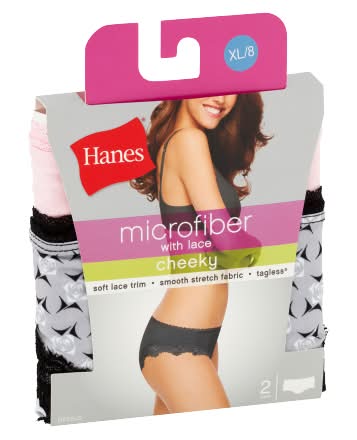 Hanes Cheeky Microfiber Panties With Lace, Women, XL, Assorted (2 pack)