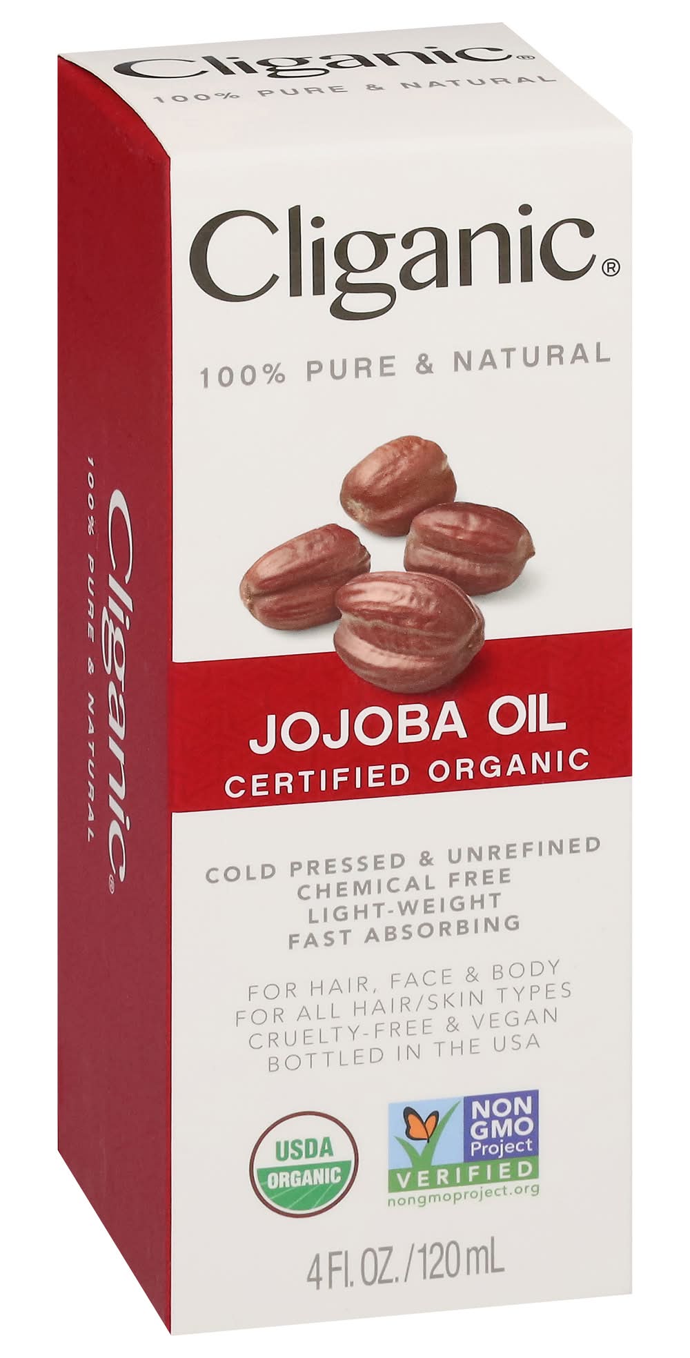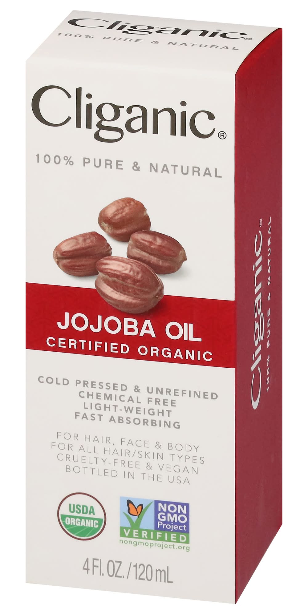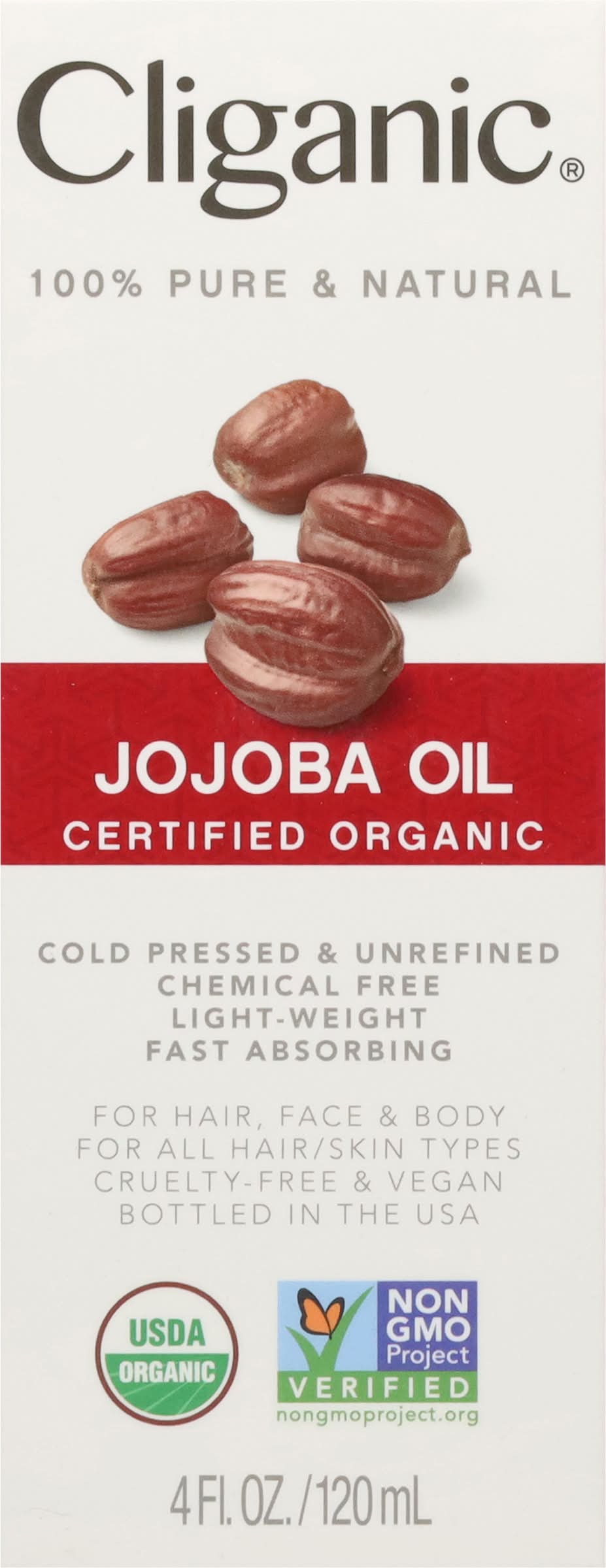 USDA Organic. Certified Organic: Quality Assurance International. Non-GMO Project verified. nongmoproject.org. 100% Pure & natural. Cold pressed & unrefined chemical free light-weight fast absorbing. For hair, face & body for all hair/skin types. Cliganic Organic Jojoba Oil is 100% pure cold pressed, unrefined and all natural, making it the ultimate treatment for dry skin and hair. Often referred to as nature's moisturizer for its ability to mimic the skin's sebum, our virgin jojoba oil contains vitamins and minerals essential for healthy-looking skin and hair, including vitamin E, B-complex. www.cliganic.com. support(at)cliganic.com. Cruelty free. FSC: Mix: Paper from responsible sources. Bottled in the USA. Bottled in the USA with globally sourced ingredients.